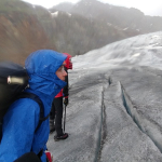 Nach einer gemütlichen Anfahrt trinken wir Kaffee am Gepatsch-Haus und steigen, durch das vom Gletscher ausgeschliffene Tal, auf zur Rauhekopf-Hütte. Beim Aufstieg beginnt auch schon der Kurs, denn wir kommen auf den Gletscher und dürfen erste Gehübungen mit den Steigeisen machen. Bis zur Hütte queren wir einige Schneefelder und suchen uns den Weg entlang der spärlichen Markierungen. An der Hütte werden wir vom Hüttenteam (Rainer, Bastian und später auch Elaine) herzlich aufgenommen. Wir beziehen unser Lager. Am Abend heißt es noch Standplatzbau am Übungsfels vor der Hütte. Nach dem Abendessen fallen alle müde ins Bett.