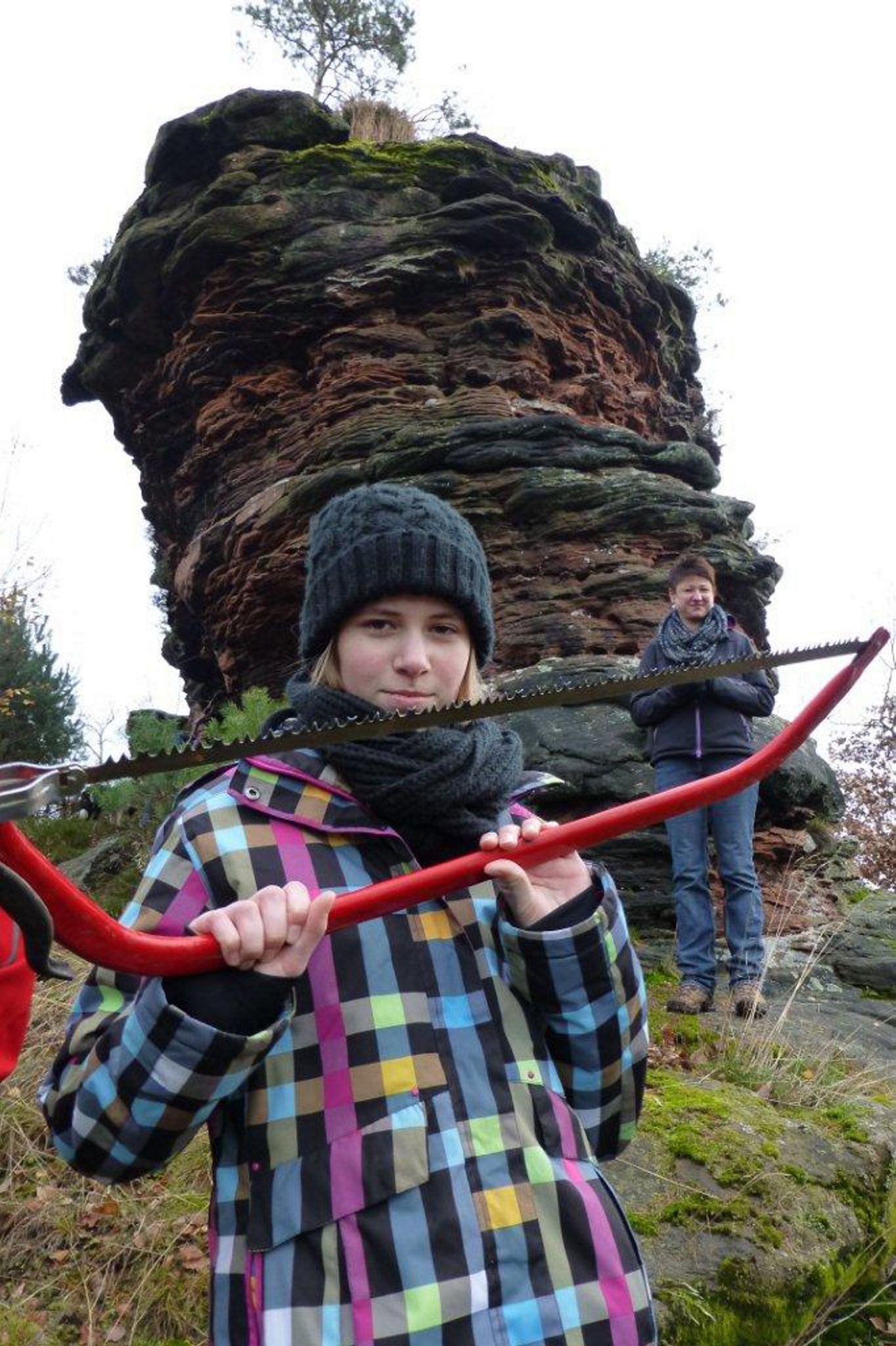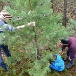 Es trifft einen relativ kleines, zierliches Bäumchen, welches mit vereinten Kräften auf den Felsen gezogen und dort befestigt wird, schließlich muss es bis zum Frühjahr durchhalten.