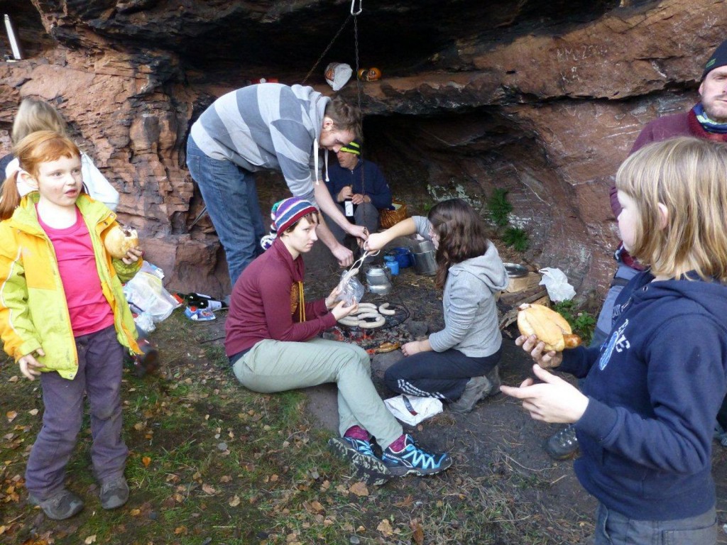 Jetzt beginnt der gemütliche Teil, es wird gegessen, getrunken, von vergangenen und zukünftigen Bergerlebnissen erzählt und die derzeitigen Vorkommnisse in der Szene diskutiert, während die etwas jüngeren unter uns um den Fels toben.