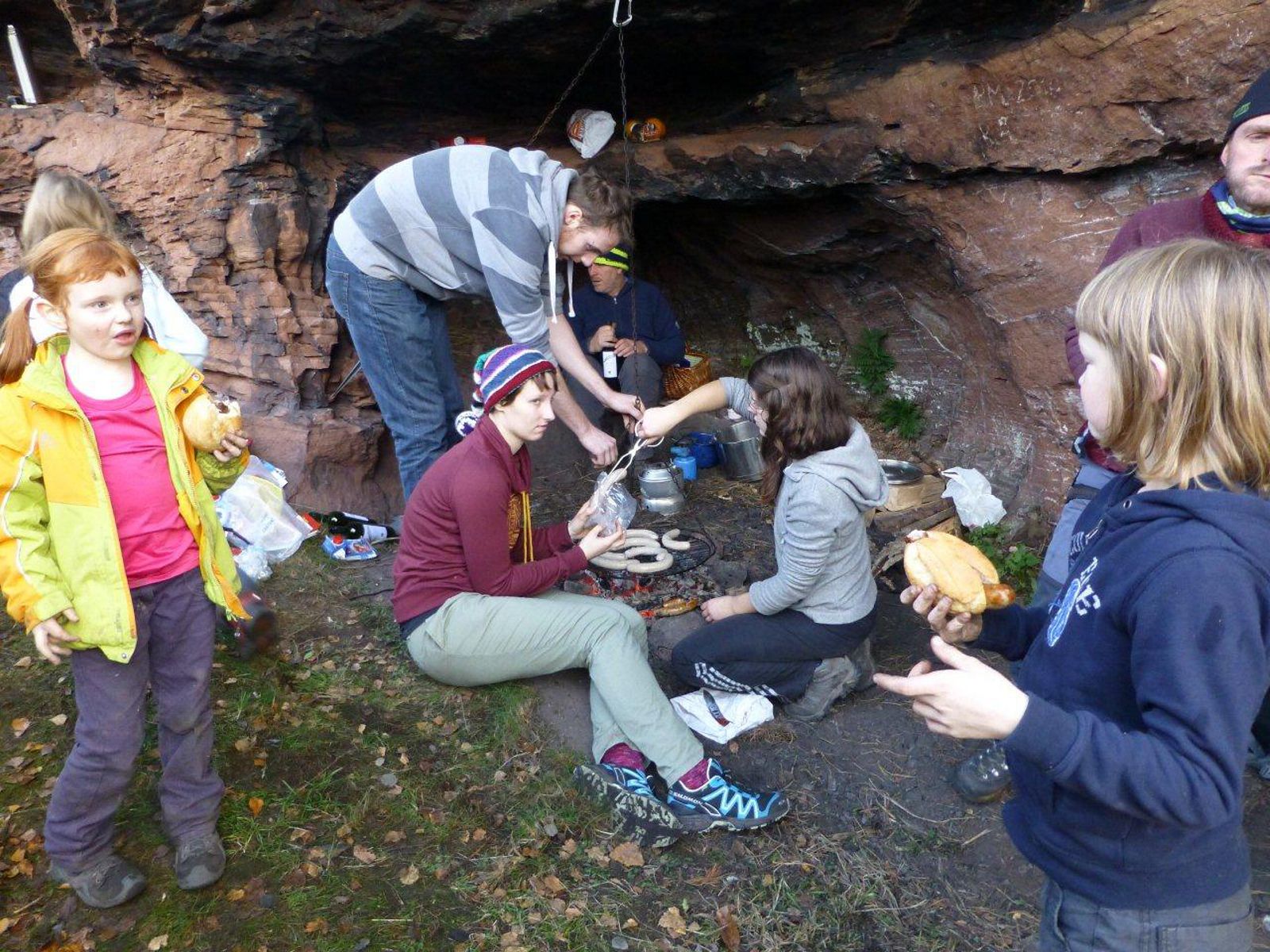 Angekommen am Fuße des Felsens wird natürlich zuerst das Feuer entfacht und Glühwein/Kinderpunsch gekocht, nebenbei wird der Christbaum auserwählt.
