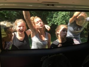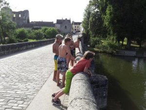 Zur Abkühlung sprangen wir alle in den nahe am Campingplatz gelegenen Fluss „Loing“. Viele von uns wollten eine extra Erfrischung und sprangen von der Brücke ins Wasser. Die Jungs zeigten sich eher ängstlich und ließen unserer furchtlosen Maja den Vortritt. Nachdem Maja munter wieder aus dem Wasser auftauchte, trauten sich auch die anderen.