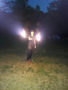 Zu Essen gab es abends leckeres Curry. Danach beeindruckten Marvin, Timo und Deniz uns mit einer kleinen Feuershow. Theresa stellte Tische und Bänke auf zum Tisch/Bierbank-bouldern.