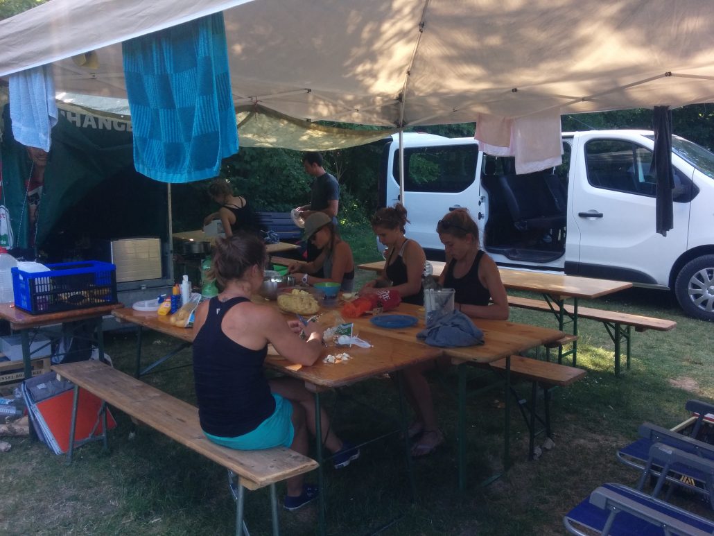 Nach einigen Stunden am Fluss gab es super leckere Spaghetti-Linsen-Bolognese zum Abendessen, die Verena mit etwas Unterstützung von einigen von uns gekocht hatte.