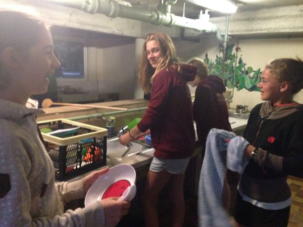 Auch wenn nie jemand vor Enthusiasmus aufsprang, um den Abwasch zu machen, fanden sich doch immer vier Leute, die sich zum Spülen bereit erklärten und letztendlich hatten wir eigentlich immer Spaß dabei. Nach und nach gingen alle schlafen. Pauline, Marike, Urška, Deniz und Sina entschieden sich dazu, draußen zu schlafen.