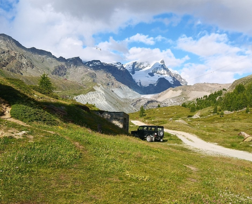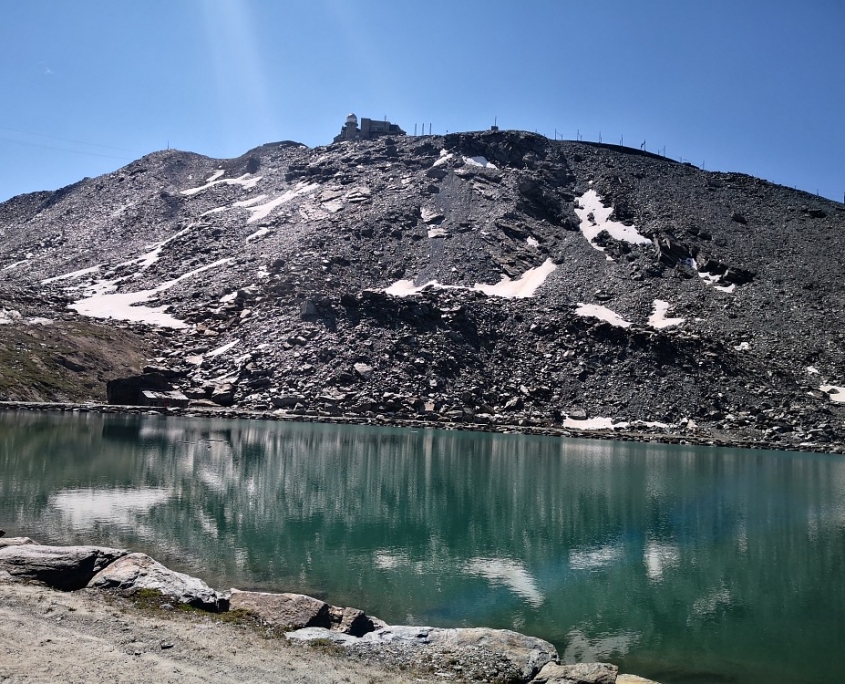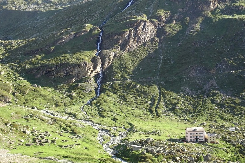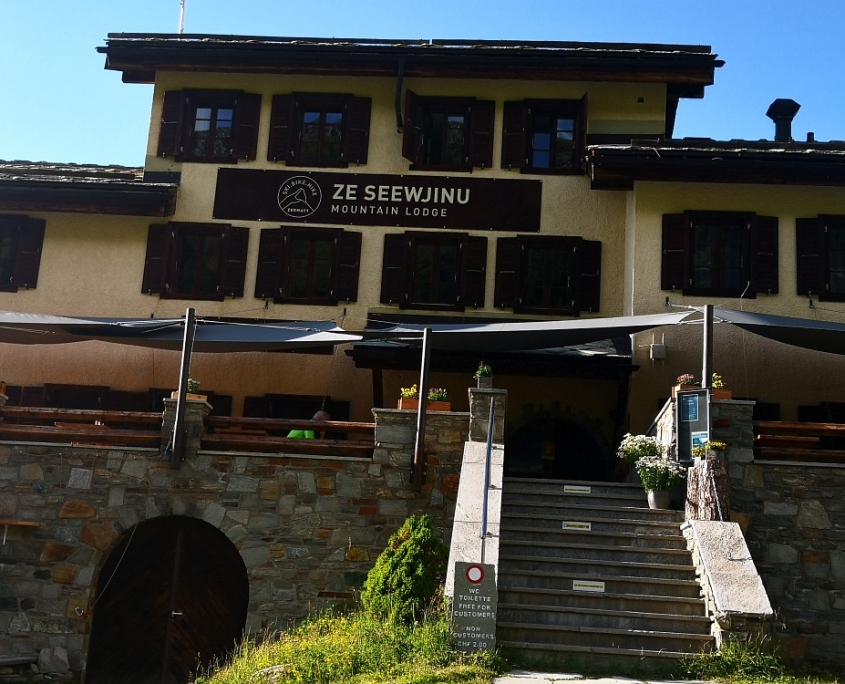 Am nächsten Tag stand uns die „Königsetappe“ bevor. Vorbei am „trockenen Steg“ der Seilbahnstation auf 2-939 m, der Besucher auf das „Matterhorn Glacier Paradise“ der höchstgelegenen Bergstation Europas auf 3.883 m im direkten Angesicht des mächtigen Breithorns (4.164 m) führt, ging es anschließend lange bergab nach Furi (1.867 m) und dann nach der Mittagspause wieder bergauf über die Riffelalp (2.222 m , www.riffelalp.com) weiter zum einsamen, aber unbedingt empfehlenswerten „Mountain Lodge Ze Seewjinu“ (www.zeseewjinu.ch, 2.296 m). Nach einem hervorragenden Abendessen ging für uns ein langer Wandertag zu Ende. Insgesamt waren es an diesem Tag dann doch ↑1.136 m und ↓1.443 m.