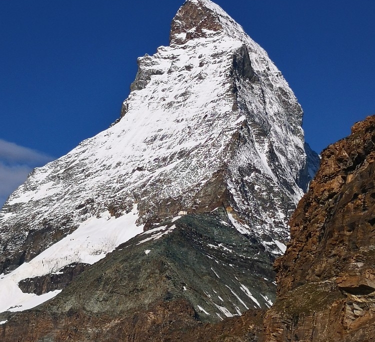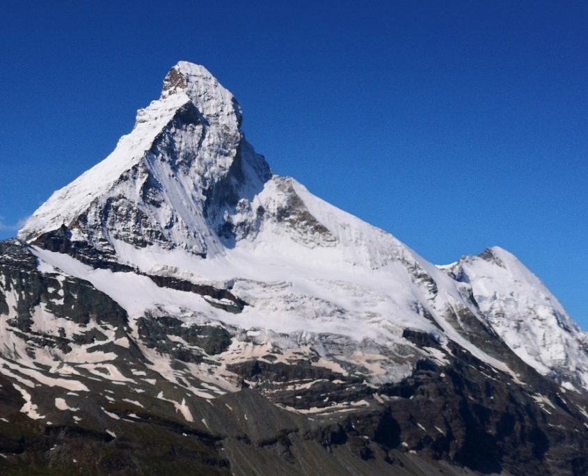 Am nächsten Morgen folgte nach ca. 1/2 Stunde leichtem Aufstieg die erste Überraschung: Der direkte Blick aufs Matterhorn (4.478 m)mit dem weltberühmten Hörnligrat und der äußerst schwierigen Nordwand bei allerschönstem Wetter ließ unsere „Bergsteigerherzen“ deutlich schneller schlagen!
