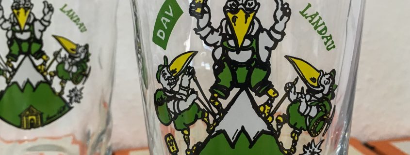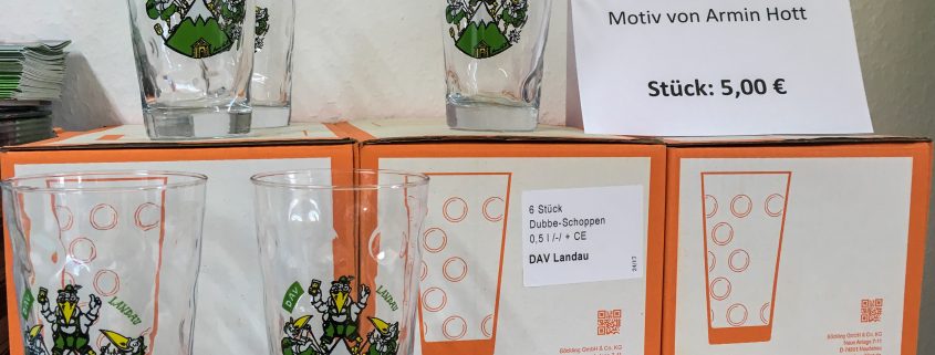 Die Sektion Landau hat eine Serie von Dubbegläsern aufgelegt. Sie sind mit einem eigens durch den Künstler Armin Hott gestalteten Logo versehen, das sich nicht zu tierisch ernst gesehen, mit dem Thema Bergsteigen beschäftigt.