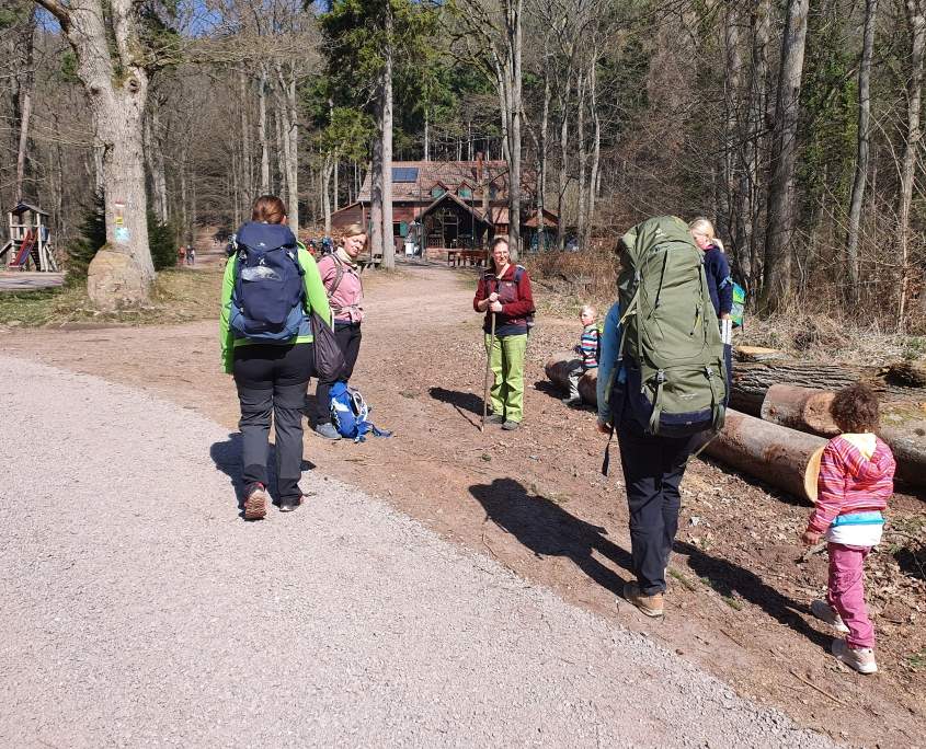 Am Anfang standen trotzdem die noch üblichen Zweifel, ob die Tour würde stattfinden können und natürlich die obligatorische Frage nach der Anzahl der einzuhaltenden G´s. Schließlich kam dann die gute Nachricht von Julia: „So wie es aussieht kann unsere Tour stattfinden“! Auch der Wettergott meinte es an diesem Wochenende gut mit uns und sorgte nicht nur für gute Laune bei unserer Wandergruppe, sondern auch für ordentlichen Betrieb auf der Hütte. Vom Startplatz am Waldparkplatz Frankweiler geht es kurz durch den Ort und dann über einen Zwischenstopp auf der Landauer Hütte weiter zu unserem Ziel der Ringelsberghütte. Zeit sich in aller Ruhe zu unterhalten und alte und neue Kontakte zu pflegen. Die Kinder bestimmen das Tempo und so wird es eine gemütliche „Reise“ für uns alle.
