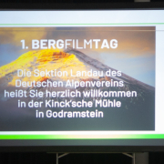 Als um 14.00 Uhr das ganze Helferteam einsatzbereit war und unsere erste Vorsitzende Theresa Baumann zusammen mit Veranstaltungsreferent Stefan Eckert den Bergfilmtag eröffnete, waren bereits einige Besucher anwesend um den Kurzfilm „Concerto Vertical“ von Burkhard Maria Weber zu sehen.
