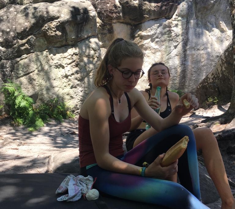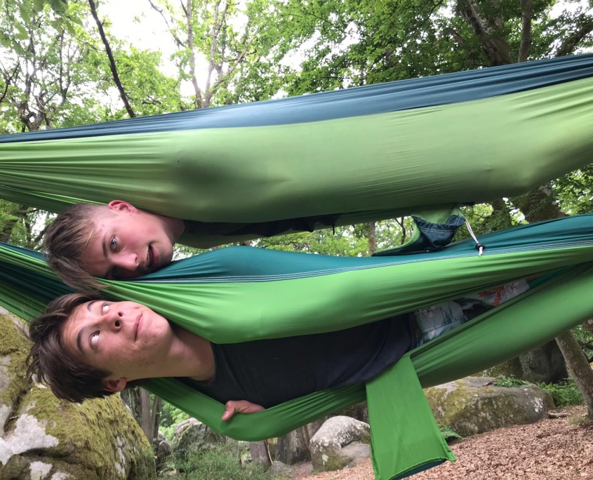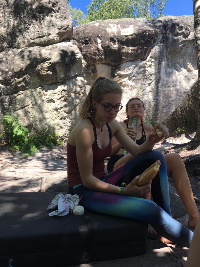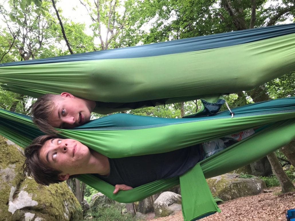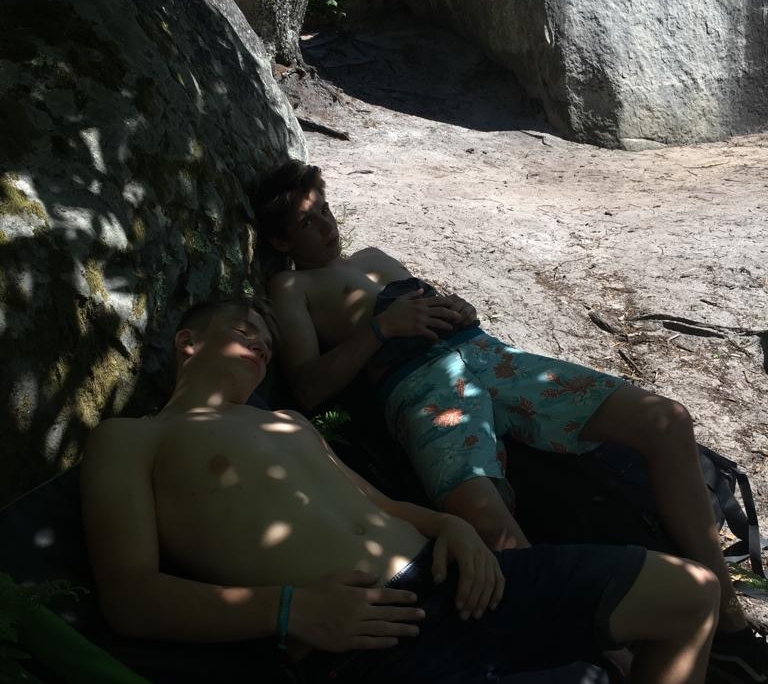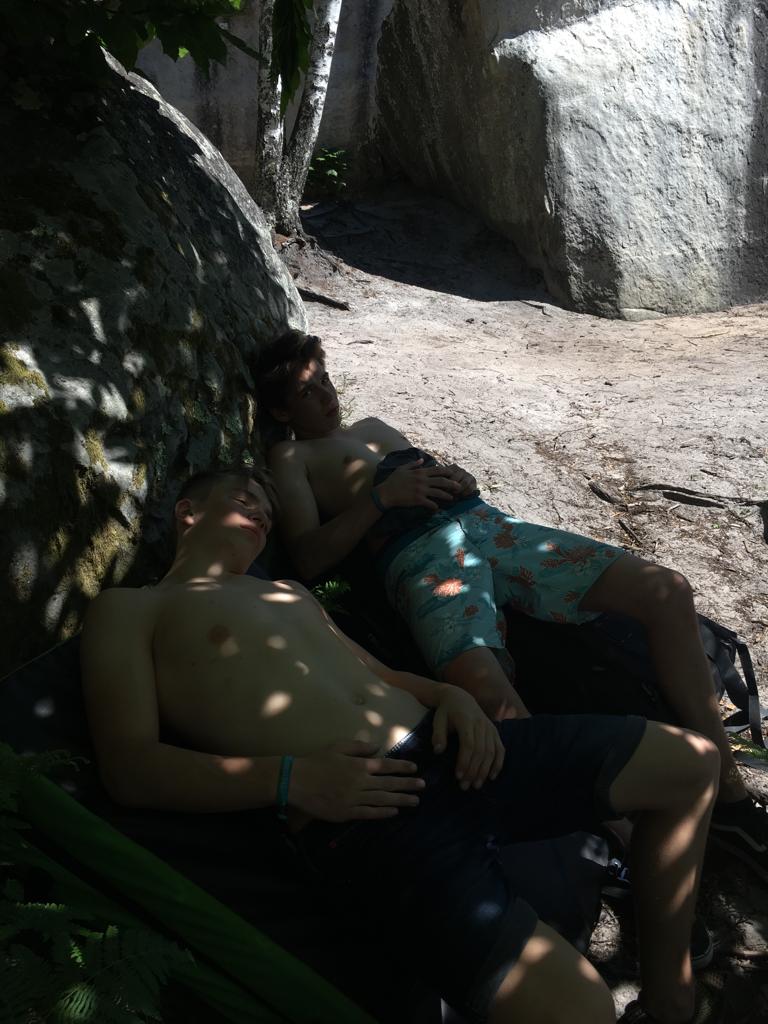 Regen. Kaum haben wir einen Unterschlupf gefunden lässt der Regen nach und wir können durchstarten. Ob Parcour, harte Boulder, 30 min runs, oder ein Nickerchen auf dem Crashpad oder in den begehrten Hängematten: Jeder findet eine Möglichkeit sich auszupowern oder seinen Schlafmangel nachzuholen.