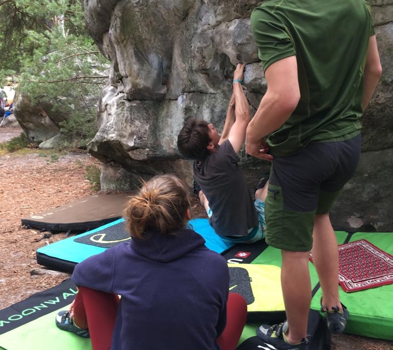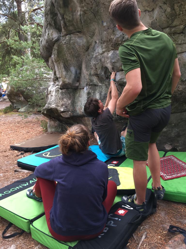 Geplant ist das bereits bekannte Bouldergebiet „Rocher des Potets“ anzufahren. Dort angekommen, sieht das Gebiet aber garnicht wie letztes Mal aus. Trotz der Vorfreude können wir uns mit dem Bouldergebiet „la Cuvier“ zufrieden geben. Es erweist sich als wunderschönes flaches Gebiet mit Sommerfeeling und interessanten Boulderproblemen.