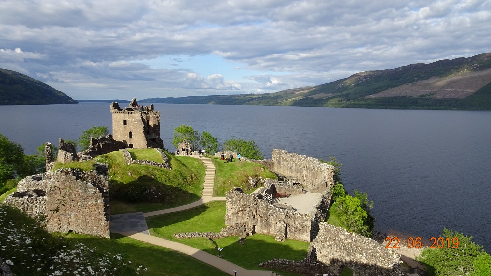 Diese Etappe ist sicher die anspruchsvollste auf dem Great Glenn Way. Auf ihr ist ein langer Anstieg beginnend in Invermoriston auf eine Höhe von knapp über 400 Metern zu bewältigen. Der Lohn der Anstrengung ist jedoch (klares Wetter vorausgesetzt) ein fantastischer Blick auf den 35 Km langen Loch Ness, der 400 Meter unter uns liegt. In Drumnadrochit angekommen teilt sich die Gruppe, drei fahren mit dem Bus zum Urquart Castle, eine mittelalterliche Burgruine am Ufer des Loch Ness, die in großen Teilen noch erhalten und durch seine Lage wirklich sehenswert ist, die anderen genießen beim Bierchen das schöne Wetter!