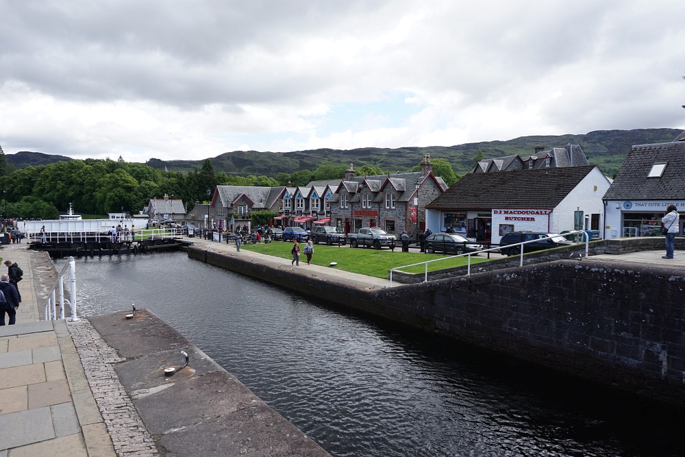 Heute beginnt unsere eigentliche Tour. Wir lassen am Morgen recht schnell Fort William hinter uns und folgen größtenteils dem Kaledonischen Kanal bis nach Gairlochy. Hier endet normalerweise die 1 Etappe, jedoch gibt es dort so gut wie keine Unterkunft, so dass wir ca. 6 km weiter nach Spean Bridge laufen müssen. Unterwegs kommt ab und zu ein Boot vorbei getuckert, absolutes Highlight ist aber die Schleuse Neptuns’s Staircase aus dem 19. Jahrhundert. Die Schiffe erklimmen hier 19 Meter Höhe in 8 Stufen.