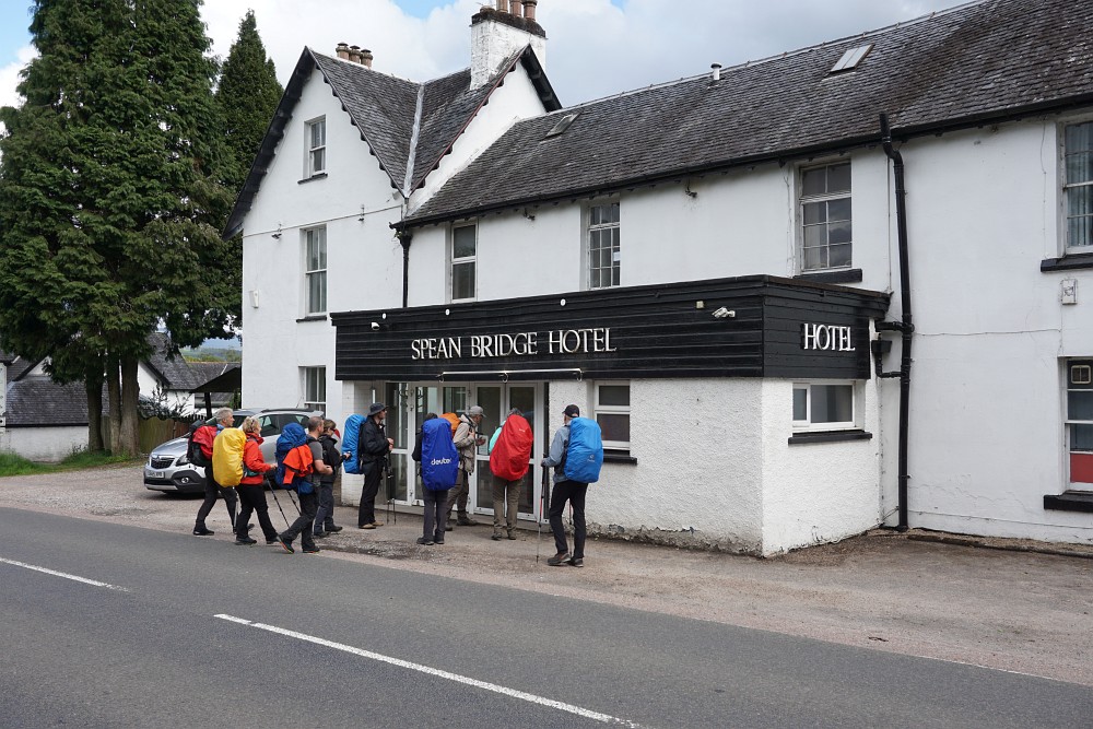 Zunächst folgen wir der Trasse einer stillgelegten Eisenbahn. Der Weg verläuft weiter durch Mischwald entlang des Loch Oich. Am Ende des Sees stoßen wir wieder auf den Kaledonischen Kanal, der uns bis nach Fort Augustus begleitet. Wir haben den Loch Ness erreicht, was ein Teil der Gruppe zu einer Schifffahrt über den See nutzt und anschließend mit dem Bus zu unserem Etappenziel fährt, während der Rest die verbleibenden 9 km auf Schusters Rappen bewältigt.