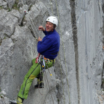 Die Hüttenwirte waren freundlich und das Essen schmeckte. Der Abend klang so in gemütlicher Runde bei ein paar Gläsern Bier aus und pünktlich zur Nachtruhe um 22:00 Uhr gingen alle zu Bett. Nach einer mehr oder weniger erholsamen Nacht ging es am nächsten Morgen los mit der Ausbildung. Für diesen Tag war gutes Wetter vorhergesagt und Wolfgang hatte deshalb jede Menge mit uns vor. Nach einem kurzen Marsch zum nahegelegenen Übungsgelände standen einfache Kletterübungen, Standbau im Fels, Abseilen, Begehung eines Klettersteigs u.v.m. auf dem Programm. Zur Festigung wurden sämtliche Inhalte nach dem Abendessen nochmals theoretisch wiederholt und vertieft.