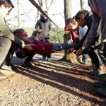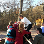 Am Samstag haben wir verschiedene Spiele draußen gespielt, z.B. heißer Draht, bei dem man eine Leine als Gruppe überqueren muss ohne diese zu berühren und Waldmemorie.