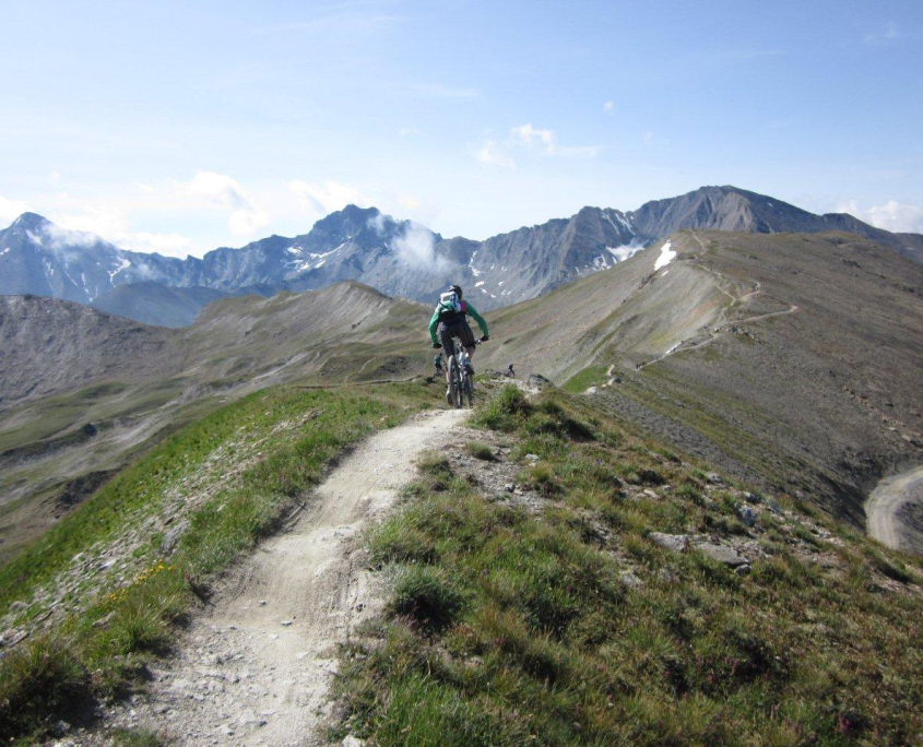 Die weiteren Touren vor Ort führten uns am Ankunftstag zur Lareinalm und am dritten Tag zur Ascherhütte. Den Abfahrtstag nutzten wir ebenfalls zum Biken: Unsere Tour führte uns zunächst wieder hinauf zum Idjoch, von dort über einen spektakulären Gratweg zum Palinkopf.