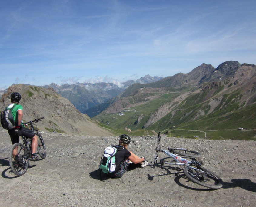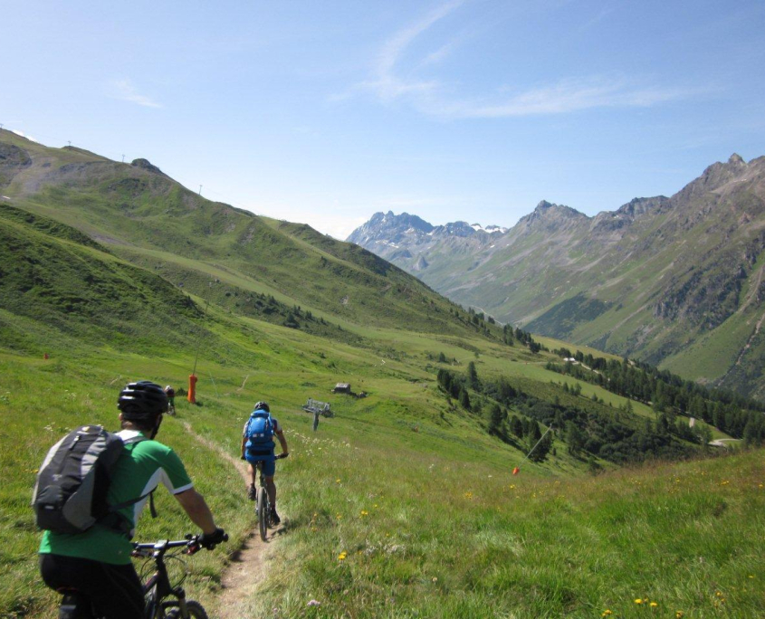 Als konditionell fordernd erwiesen sich die teilweise langen und steilen Anstiege: 1500 Höhenmeter waren es beispielsweise am zweiten Tag von unserer Ferienwohnung hinauf zum Idjoch (2800m). Glücklicherweise war im Mietpreis unserer Ferienwohnung die so genannte „Silvretta-Card“ inbegriffen. Mit dieser waren Fahrten samt Fahrradtransport in Liften und Seilbahnen kostenlos möglich. Wer sich also für die Abfahrt etwas frisch halten wollte, konnte die Gondel benutzen.
