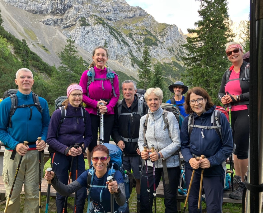 Am Schlusstag ging es gemütlich über das Hohljoch hinab zum Großen Ahornboden, einem weiten Talschluss mit uralten Ahornbäumen. Kaum hatten wir unser Ziel, den Gasthof Eng, erreicht, setzte wie bestellt der erwartete Regen ein. Das Timing des „liquid sunshine“ war einfach perfekt. Der bestellte Bustransfer mit dem netten Namen „Ferienglück“ brachte uns über die Privatstrasse bei Hinterriss zurück zu unserem Car-Sharing Bus. Wir hatten vier Tage in wunderschöner Natur bei herrlichem Wetter und sympathischer Gesellschaft erlebt.