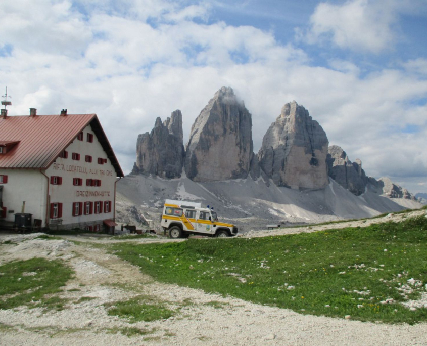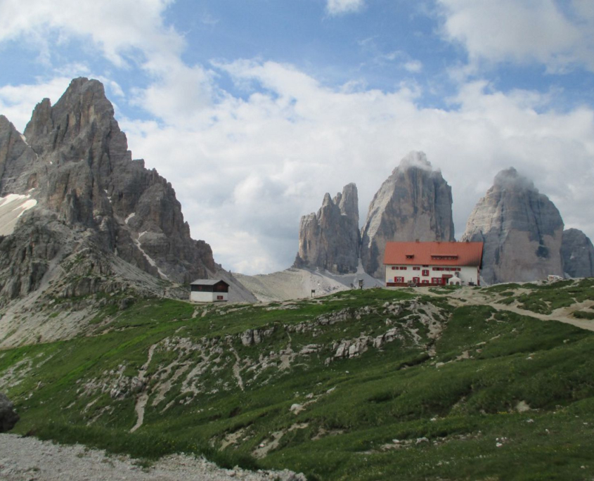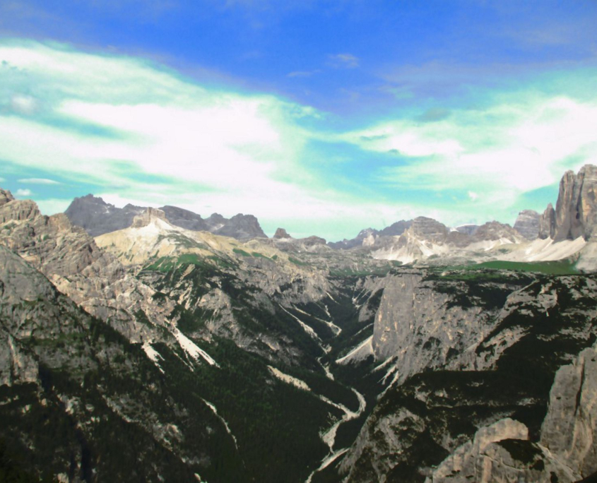 21.07.2014: Ein regnerischer Tag beginnt, so dass wir uns entschließen, ins Farnes-Tal zu fahren, um zu den dortigen Wasserfällen zu wandern. Ein Teil der Truppe begeht einen kleinen versicherten Steig am Ende des Tales, während die anderen auf dem Aufstiegsweg zurückwandern. Da für diesen Tag keine Wetterbesserung in Sicht ist, fahren wir die wenigen Kilometer bis hinunter in den mondänen Wintersportort Cortina D’Ampezzo, wo wir uns Kaffee und Kuchen genehmigen. Über Misurina geht die Fahrt dann zurück nach Sexten.