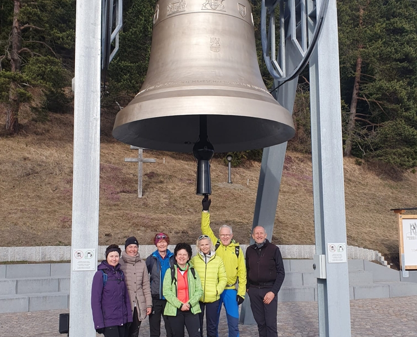 Am Sonntag lockte uns wieder strahlendes, sonniges Wetter auf die Loipen. Zuerst machten wir die Runde in Unterleutasch, danach wieder in Leutasch selbst. Nach einem guten Mittagessen in der Ropferstub´m besichtigten wir die Friedensglocke in Mösern. Sie wurde als Symbol für grenzüberschreitende Zusammenarbeit und den Frieden im Alpenraum errichtet. Hier bekamen wir von einem Acapella-Männerchor ein Ständchen gesungen. Dann begann unser Aufstieg zum Möserer See, der in der letzten Eiszeit vermutlich vom Inntalgletscher geformt wurde. Es war eine gemütliche Wanderung um den See herum, der mit seiner kleinen Insel mitten im Wald liegt.