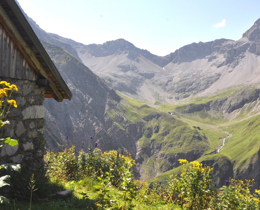 Noch müde und mit Aussicht auf Regen starteten wir am Samstag, den 17.08., unsere gemeinsame Tour in die Lechtaler Alpen. Treffpunkt war der Bahnhof in Wörth, von wo aus unsere Bergführer Steffi und Erni mit uns in das malerische Bergdorf Gramais, das kleinste Dorf Österreichs, auf etwa 1.320 Meter Höhe, weiterfuhren. Nach einer kurzen aber stärkenden Frühstückspause im BIO-Café, erreichten wir das sonnige Lechtal und es keimte die Hoffnung auf, dass der angekündigte Regen uns heute doch nicht mehr einholen würde.