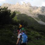 Auf der urigen echten Bergsteigerhütte ohne Duschen “denn duschen, so haben wir auf der Tour gelernt, wird meistens total überbewertet“ lässt es sich auch ohne massive Körperhygiene gut aushalten. Es ist ein tolles Gefühl in den Sonnenuntergang zu sehen, und ein Teil einer so vielfältigen und betörenden Landschaft zu sein. Auf der einen Seite tiefgrüne und bewirtschaftete Almen, auf der anderen Seite die schroffen und mächtigen Kalkfelsen. Einfach klasse!