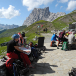 Auf dem schier nicht enden wollenden Weg, und gefühlten 100 Kurven, kommt die Hütte einfach nicht näher und der Ruf nach Radler, Bier und anderen Erfrischungsgetränken ist in der Truppe immer lauter zu hören. Endlich, die letzte Kurve, Hütte in Sicht. Unser Durst nach kalten Getränken ist vorerst gelöscht. Auf der Hütte gibt es übrigens den besten Schokikuchen.