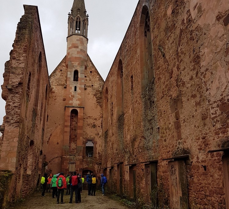 Trotz des schlechten Wetters (nass/kalt/windig) und der längeren Anfahrt (über eine Stunde) haben sich 16 Wanderer auf den Weg in den nördlichen Pfälzerwald gemacht. Die erste Monatswanderung 2019 stand an und nach einigen Navigationsdifferenzen haben auch die letzten Teilnehmer das „Göllheimer Häuschen“ bei Kerzenheim gefunden. Mit ein wenig Verspätung setzte sich die Gruppe unter Leitung von Monika Krauß in Bewegung. Bereits nach wenigen Kilometern durch den Wald erreichten wir die gut erhaltene Klosterruine Rosenthal, ein Zisterzienserinnenkloster aus dem Jahr 1241. Nach kurzer Besichtigung ging es weiter nach Stauf, wo wir die nächsten historischen Mauerreste bestaunen konnten: die nicht mehr ganz so gut erkennbare Burgruine Stauf, die älteste Salierburg der Pfalz. Auch hier versorgte uns die Wanderführerin mit Hintergrundinformationen. Die herrliche Aussicht über den Pfälzerwald und das Eisbachtal hielt sich aufgrund der bescheidenen Wetterlage in Grenzen.