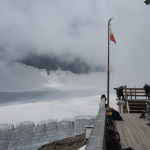 Der weitere Abstieg führte über den Grenzgletscher zur Gornergratbahn. Hier bestand die Übung ohne Steigeisen runter zu kommen (wir hatten keine Lust sie anzulegen) – machbar, aber besser ist mit. Die Randkluft musste mit einem ca. 10 m langen Holzsteg überwunden werden. Anschließend mussten noch 30-50 Hm über zwei lange Metallleitern überwunden werden, um auf den Wanderweg die zur Gornergratbahn Bergstation führt zu kommen.