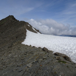 Da unsere Etappe am nächsten Tag bis zur Niederelbehütte mit lediglich 4 Stunden Gehzeit angegeben war, beschlossen wir nach dem reichhaltigen Frühstück noch den Hohen Riffler (3.168 m) zu besteigen. Dieser war mit einer Aufstiegszeit von 3 Stunden von der Edmund-Graf-Hütte aus gut ausgeschildert. Der Weg zum Hohen Riffler war ging nach einem gut angelegten Pfad schließlich über vereiste Schneefelder und sehr steilem Geröll in leichte Kletterei über. Nach 2,5 Stunden waren wir schließlich auf dem Sattel angekommen. Über einen gut angelegten Berpfad erreichten wir schließlich den Gipfel, wo ein Eintrag in das Gipfelbuch wartete.