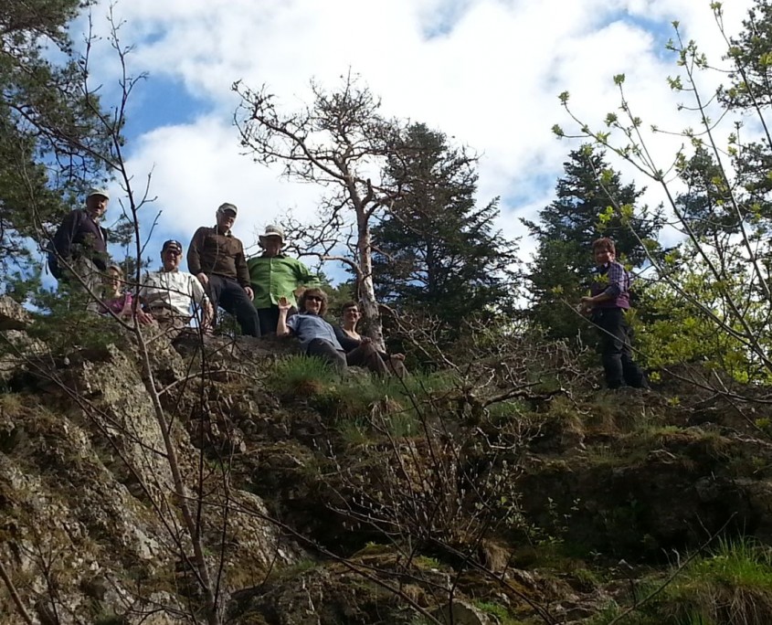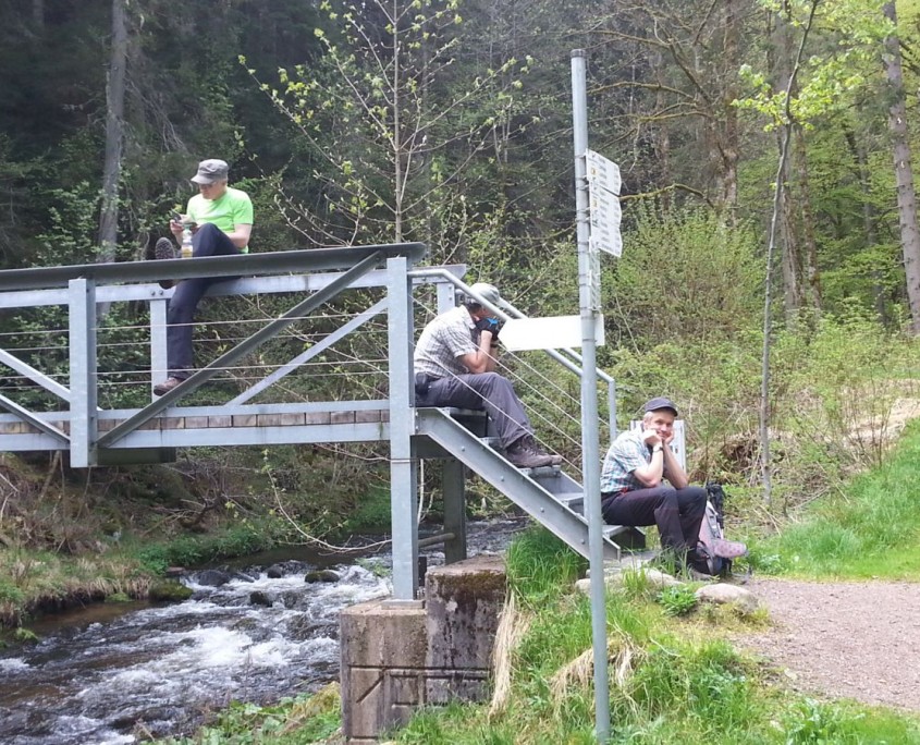 Der dritte Tag war nur 13 km lang und führte uns zum nördlichen Talrand der Wutach vorbei an den wenigen Resten des „Räuberschlössel“. Am Zusammenfluss der Haslach, der Wutach und der Gutach legten wir eine kleine Pause ein. Früh nachmittags waren wir in Lenzkirch in unserer Unterkunft, dem Hotel Schwörer. Ein Teil der Gruppe gelang dann noch die Besteigung des Hochfirst (1190 m hoch). Von diesem hatte man herrliche Tiefblicke auf den darunter liegenden Titisee und den Feldberg, der noch teilweise mit Schneeresten bedeckt war.