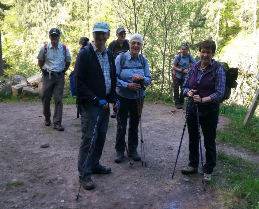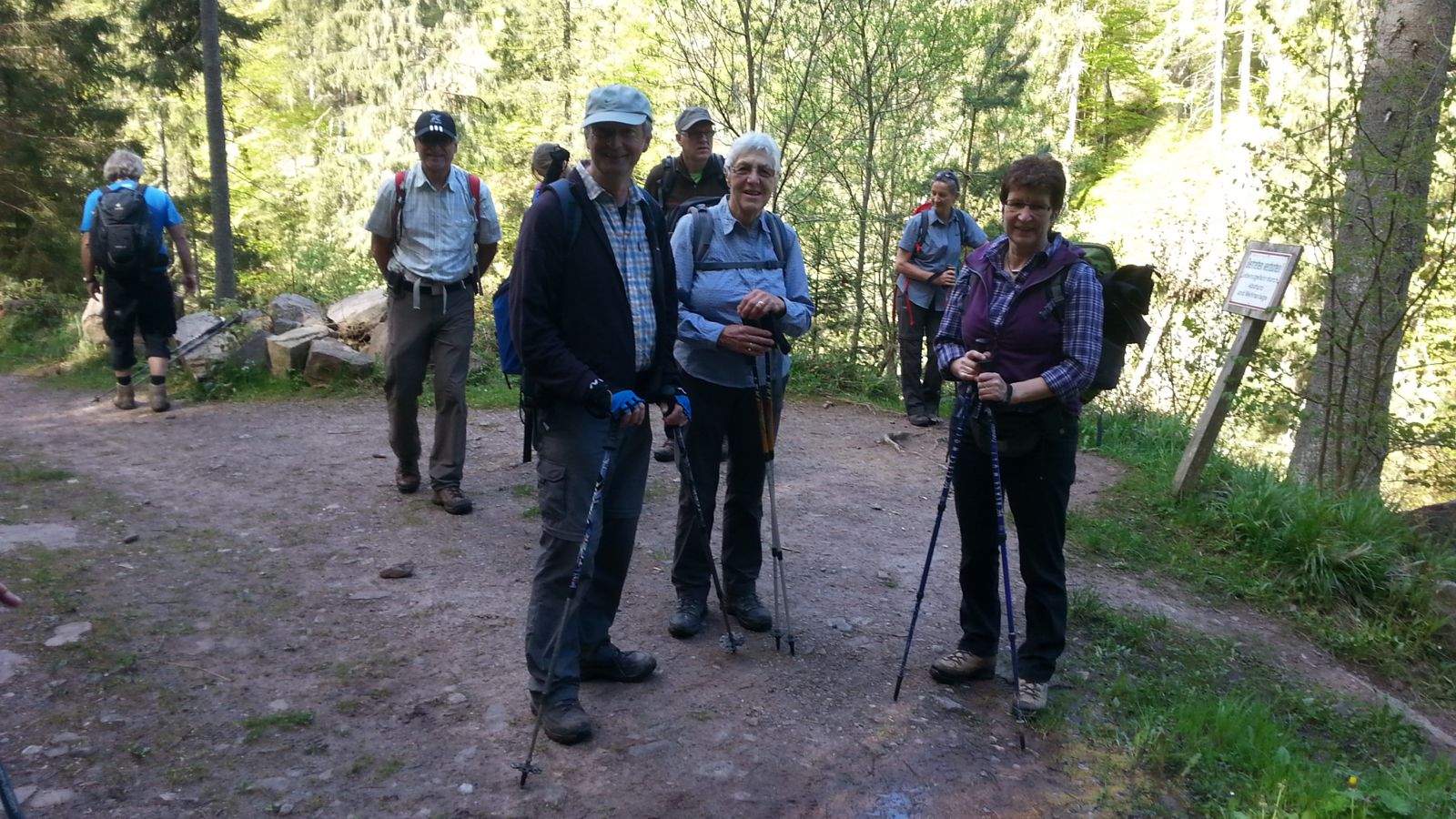 Der zweite Tag begann mit einem Leiternabstieg in die kleine Schlucht des Schleifenbachs, der in drei Kaskaden 20 m in die Tiefe stürzt. Beim Sägewerk Wutachmühle begann der Einstieg in die Wutachschlucht. Diese Schlucht mit ihrer teils urwaldartigen Vegetation und einem Pfad, der teilweise nur knapp über dem Wasserspiegel entlang der Felsen führt, haben uns genauso beeindruckt wie der Tanneggerwasserfall und der zusätzliche Abstecher in die ursprüngliche Gauchachschlucht, an deren Ende wir mit einer Einkehr in dem Wanderheim Burgmühle mit leckerster Linzer Torte belohnt wurden.