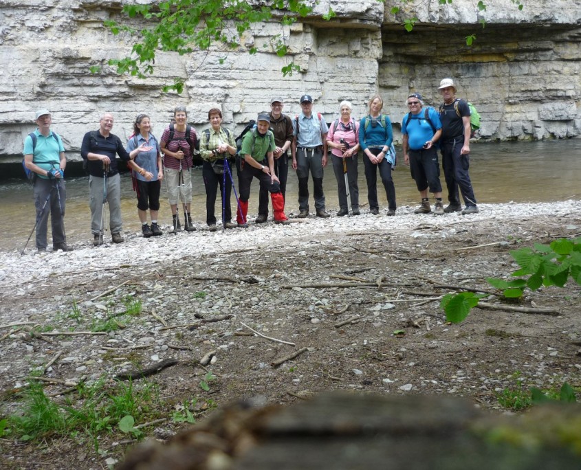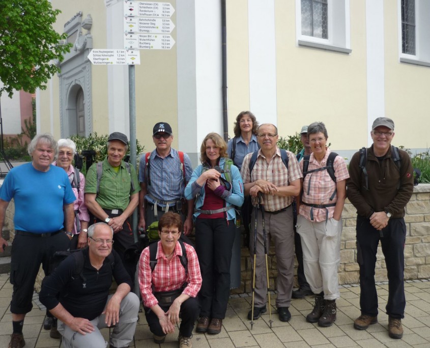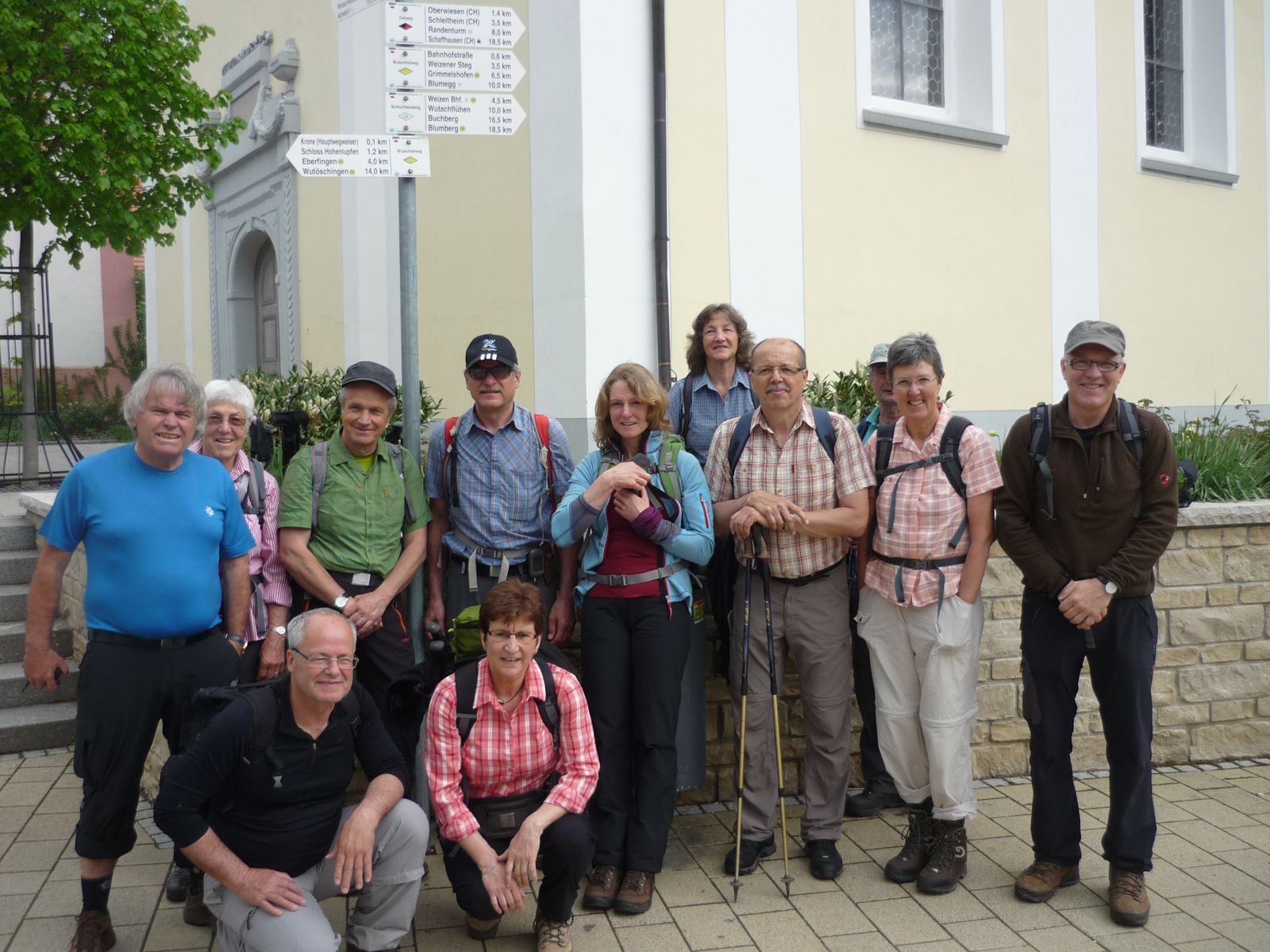 Ehrgeizig und voll Freude starteten die 13 Wanderer am Startpunkt mitten in Stühlingen, um entlang der Wutach, am Weizener Steg vorbei (dort passierten wir ohne Zollkontrolle die Grenze zur Schweiz) und über bequeme Waldwege bis zur Museumsbahnhaltestelle Lausheim-Blumegg zu wandern.