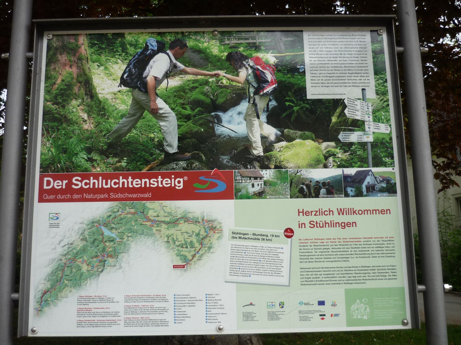 Nachdem uns der Bahnstreik einen Strich durch die Rechnung machte, fuhren wir mit PKW´s von Landau nach Stühlingen zum „Parkplatz Schluchtensteig“. Ziel war die Begehung des Schluchtensteigs, einer der bekanntesten deutschen Fernwanderwege, der erst 2008 eröffnet wurde (Info: www.top-trails-of-germany.de). Dieser ist durchgehend gekennzeichnet mit der Schluchtensteig-Raute, dank der guten Markierung ist ein Verlaufen praktisch nicht möglich.