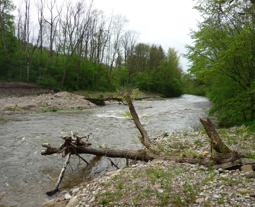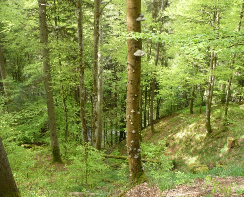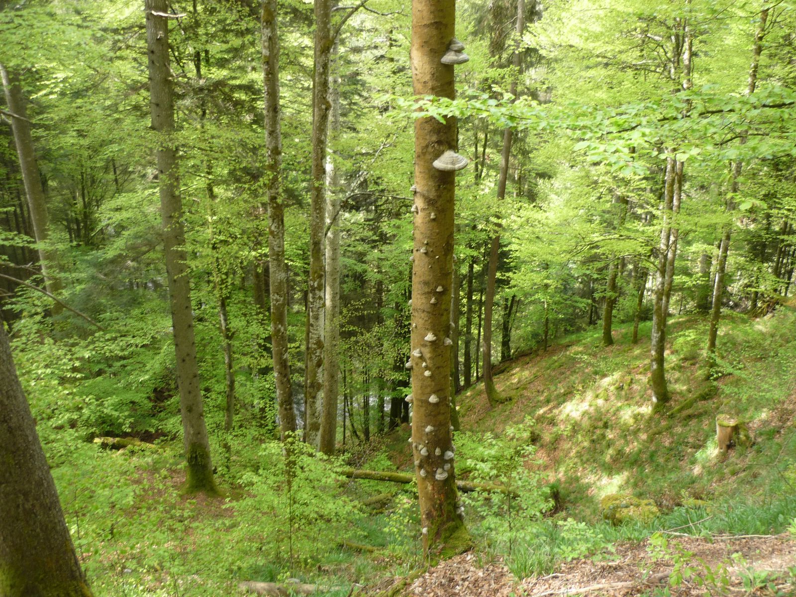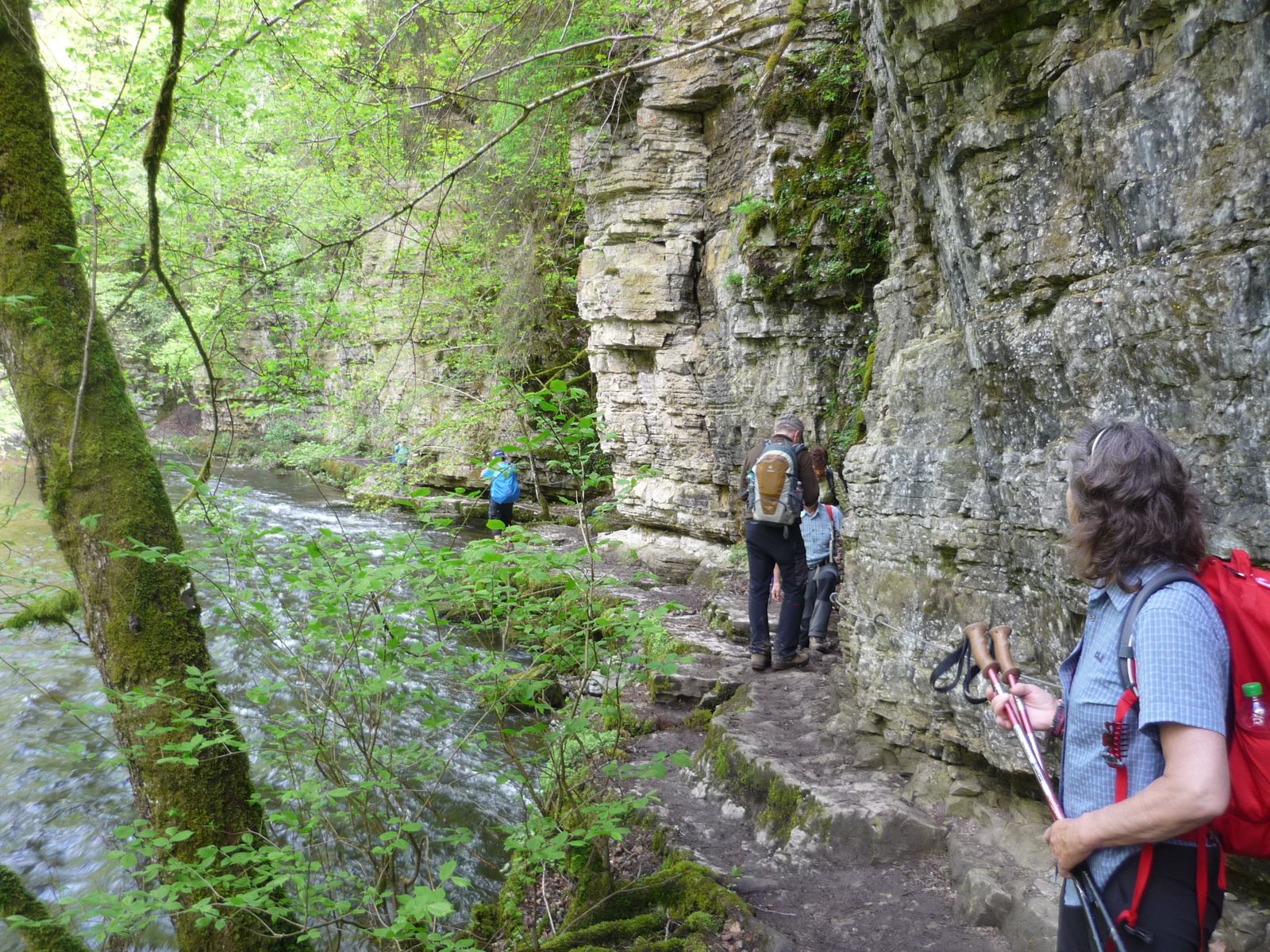 Der Weg führte die Gruppe anschließend weiter durch die Wutachtflühen (Flühen = Felsen), den unteren Teil der Wutachschlucht, wobei wir aufgrund der Regenfälle der Wochen zuvor die Schlechtwettervariante wählen mussten. Danach wurde der höchste Punkt des Tages, der Buchberg (880 m) passiert. Von dort aus war es nur ein Katzensprung zum Etappenziel, dem Hotel „Hirschen“ in Blumberg, in dem wir außergewöhnlich gut betreut und bewirtet wurden.