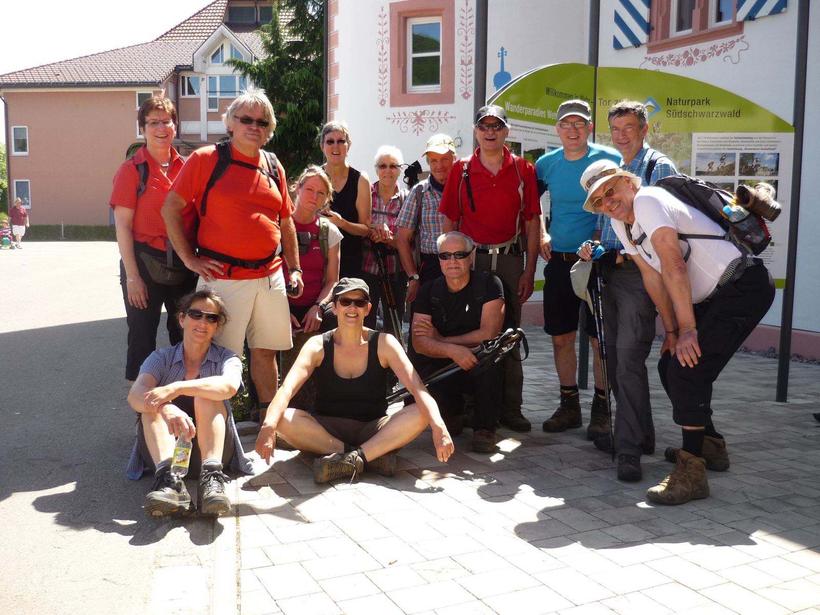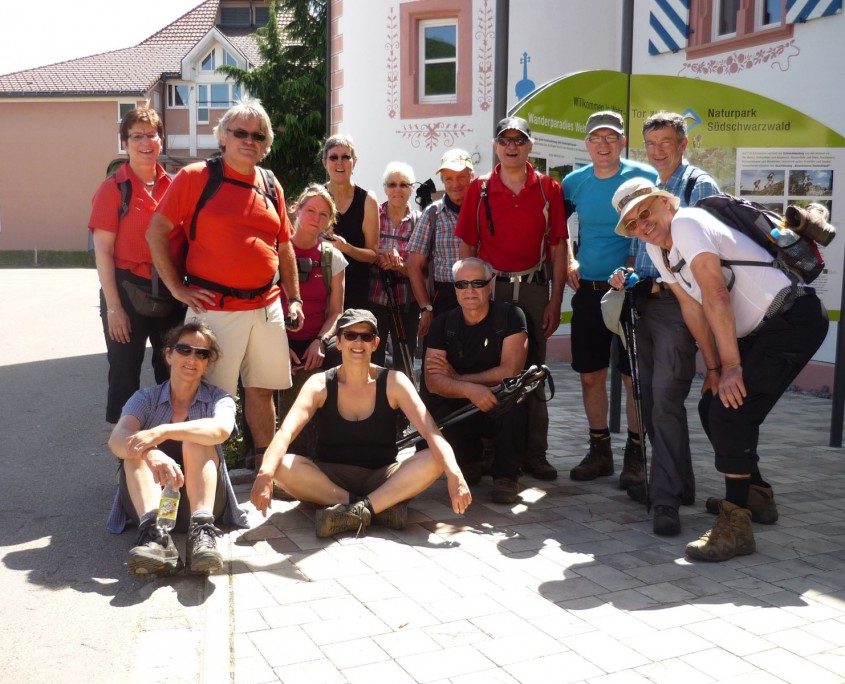 Gleich nach dem Frühstück begann bereits zum Beginn der Etappe der Aufstieg zum 1039 m hohen Lehenkopf. Am dortigen hölzernen Aussichtsturm vorbei (Aufstieg auf den Turm war natürlich ein Muß!) führte uns unser Weg auf den Dachsberg. Anschließend beginnt die offene Landschaft des Hotzenwaldes. Nach einer Pause auf dem Kreuzfelsen führte uns unser Weg am Ibacher Kreuz vorbei in die Hochwehraschlucht hinab, direkt zum Endpunkt des Tages im Hotel Wehrahof in Todtmoos. Am Nachmittag stand für einige Teilnehmer noch ein kleiner Stadtbummel mit der lohnenswerten Besichtigung der Wallfahrtskirche auf dem Programm. Den letzten Abend verbrachten wir bei bester Stimmung in einem Restaurant in der Nähe unseres Hotels.