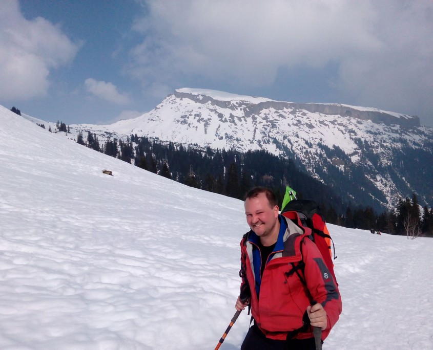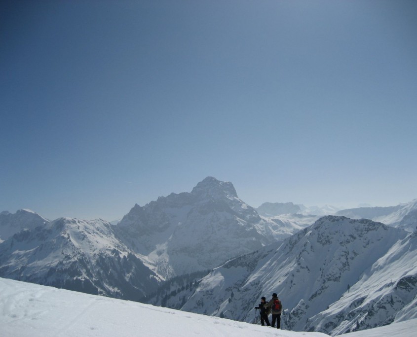 Das Kleinwalsertal ist bekannt für gute Schneebedingungen, weshalb auch wir leider nicht verschont wurden von einem Tag mit Nebel und Neuschnee. Trotz den widrigen Bedingungen gingen wir den Hählekopf (2058m) an, mussten aber auf dreiviertel der Strecke zurückgehen, da die Orientierung im Nebel nicht möglich war.
