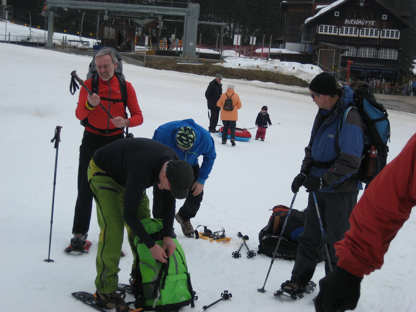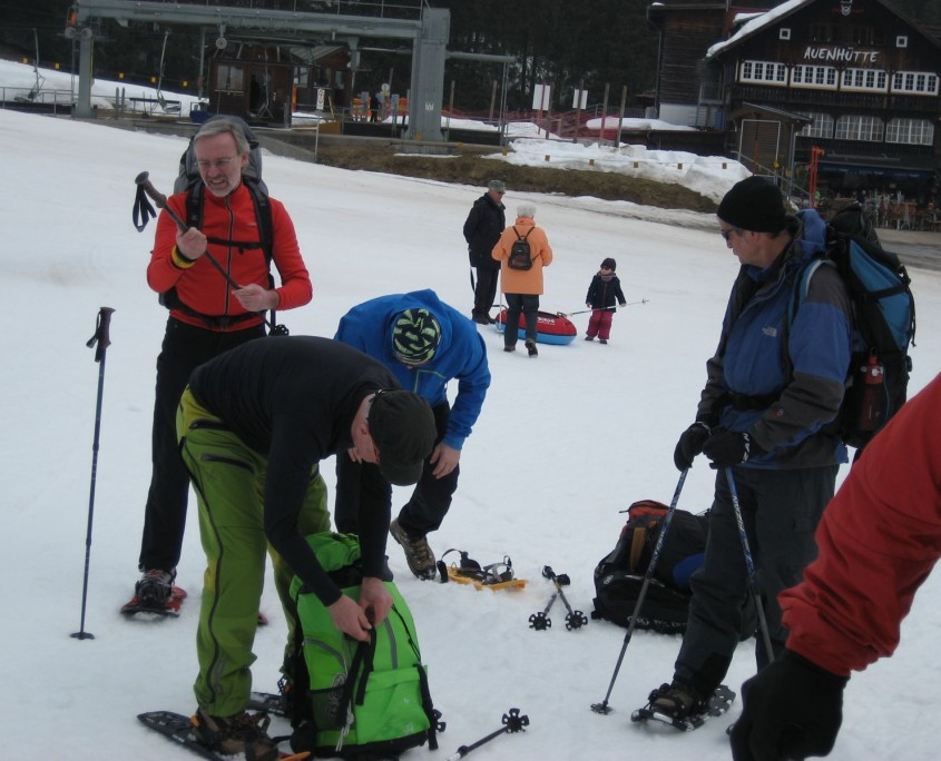 Zu einer viertägigen Schneeschuhtour starteten wir früh am Morgen Richtung Oberstdorf und Hirschegg (Riezlern) zum Kleinwalsertal. Angekommen am Parkplatz der Talstation Auenhütte schlüpften wir gleich in die Schneeschuhe und stiegen, bei besten Wetter- und Schneebedingungen, zur Schwarzwasserhütte auf.