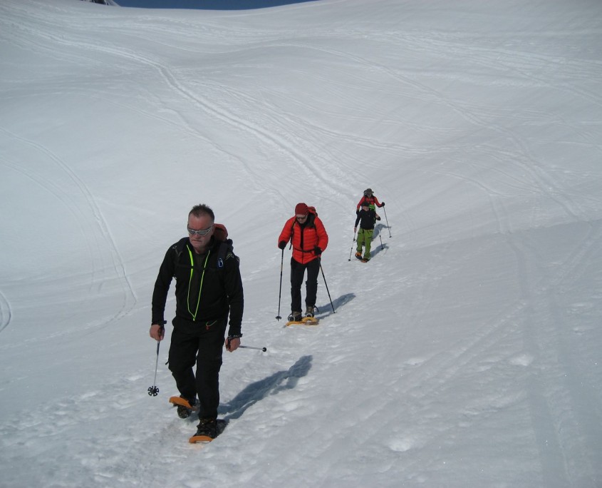 Nachdem Quartier bezogen war und das Wetter einfach zu schön war um in der Hütte zu bleiben, gingen wir am Nachmittag zum nahegelegenen Gerachsattel um die ersten Eindrücke der Schneelandschaft aufzunehmen.
