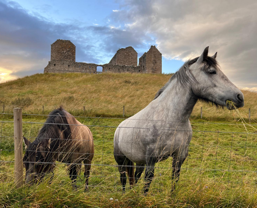 Der Weg zu unserer Unterkunft führte an den „Ruthven Barracks“ und an Pferden vorbei. Die „Ruthven Barracks“ werden wir am nächsten Tag besichtigen.