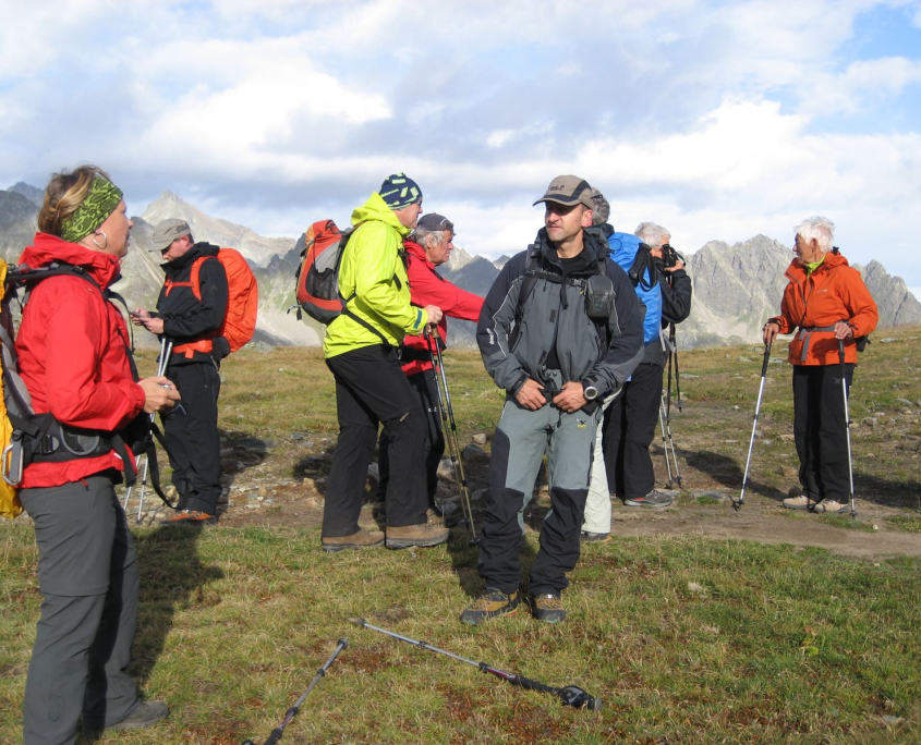 Zusammen mit einer weiteren Gruppe starten wir um 8:30 Uhr unsere Wandertour über den „Radsattel“ und die „Radschulter“ hinab zur Bielerhöhe. Heute Vormittag soll das Wetter noch halten, gegen Nachmittag ist aber Regen gemeldet.