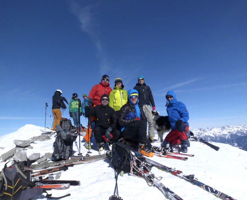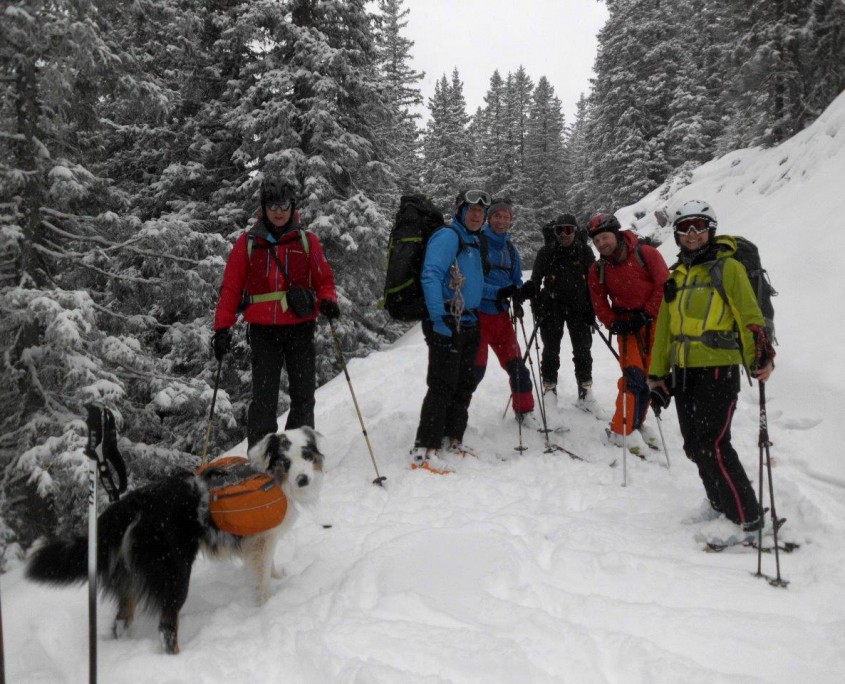Zu erwähnen ist noch unser 8. Gruppenmitglied Thorin, der Hund von Markus. Als Hütehund hat er immer versucht seine Herde zusammen zu halten. Manchmal wollte er auch ganz begeistert andere Skifahrer in seine Herde aufnehmen. Nur Maria hat er in der Abfahrt nie eingeholt… Aber er hat in diesen Tagen sehr viel gelernt und lag abends platt unter dem Tisch. Ich glaube Thorin hatte seinen Spaß und wir auf jeden Fall auch…!!!