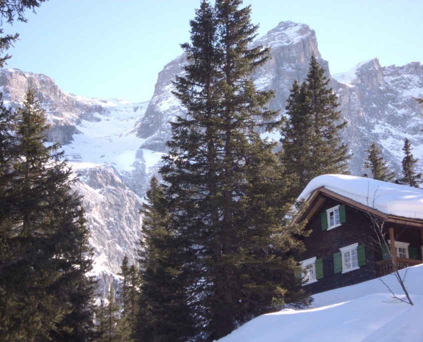 Gemütlich beginnt auch das Frühstück um 7 Uhr 30. Um 9 Uhr starten wir auf vom 1. Tag bekannten Weg. Leider ist es schon bewölkt und windig. Wir zirkeln uns nach oben und biegen ca in der Hälfte des Aufstiegs nach links Richtung Tor ab. Kurz unterhalb des Durchgangs fängt es an zu stürmen, wir werden fast aus der Spur geblasen. Die Spitzkehren werden zum Balanceakt… Markus und Maria schauen hoffnungsvoll in die Schweiz Richtung Carschinahütte, aber auch dort ist das Wetter grau, windig mit schlechter Sicht. Wir kehren um, abfellen und schnellstens aus dem Sturm…Bei der Abfahrt erwischen wir sogar noch ein kleines Stück Pulver, der Rest ist überwehter Brucharsch. Aber bei Allen klappt die Abfahrt mehr oder weniger elegant! Um 12 Uhr erreichen wir wieder die Lindauer Hütte. Im Laufe des Nachmittags fängt es an zu schneien.