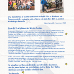 überreicht Stefan Eckert, Veranstaltungsreferent des Alpenvereins Landau in der Pfalz, am 24. November 2020, Anja Hermann, der Geschäftsführerin des Kinderhospiz Sterntaler e.V. vor dem Eingang des Kinderhospizes in Dudenhofen,