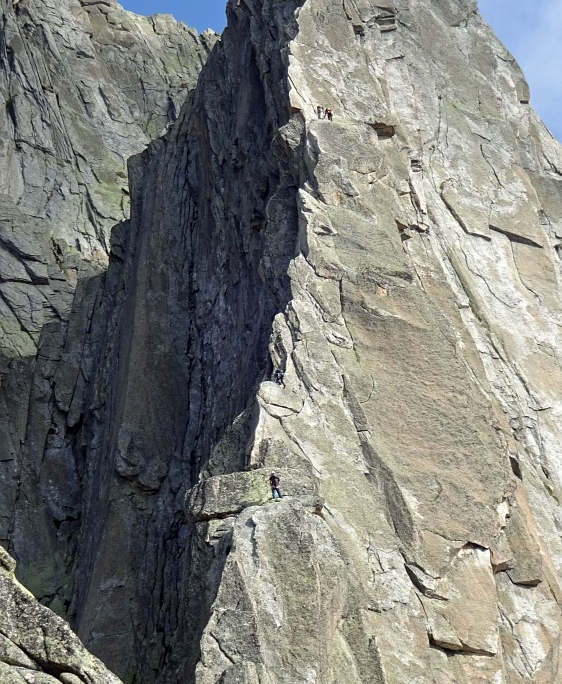 Um der vorhergesagten Schlechtwetterfront ein Schnippchen zu schlagen, trafen wir uns schon einen Tag früher am Abend des 17.8. 2019 in der Nähe des Hotels Steingletscher an der Sustenpass-Strasse in den Urner Alpen. Für Sonntag war bestes Wetter vorhergesagt und dies wollten wir ausnutzen. Hochmotiviert fuhren wir dann auch am nächsten Morgen bei wolkenlosem Himmel zu den Steingletscher Platten. Nach kurzem Zustieg starteten wir zum Eingewöhnen mit einer 7 Seillängentour (SL) „Jugendweg“ im 4er Gelände. Das Abseilen über die Route zurück an den Einstieg eröffnete uns die Möglichkeit eine zweite Tour in Angriff zu nehmen. Mit dem „Plattenweg“ legten wir noch eine Schippe in punkto Schwierigkeit drauf und spulten auch noch die 8 SL dieser Tour routiniert ab. Auch hier wurde wieder per Abseilen „abgestiegen“. Am späten Nachmittag kamen wir zum Auto zurück mit 15 Seillängen Kletterei in der Tasche. Dies war ein perfekter Start in die Tourenwoche. Der Himmel zeigte jedoch schon an, dass es nicht so weitergehen würde. In der Nacht und am nächsten Morgen regnete es und stoppte unseren Tatendrang merklich. Gegen Mittag hörte die Beregnung auf und wir wollten die Zeit bis zum nächsten Schauer nutzen. Wir gingen daher zum Pfriendler, einem Felsmassiv etwas höher am Sustenpass gelegen und mit einer Stunde Zustieg. Es blieb trocken und wir beeilten uns, die gewählte Tour „Via Fritz“ mit 8 SL abzuspulen. Der Einstieg in die 5er Tour forderte schon etwas und nach der 4. SL setzte die Beregnung erneut ein, so dass wir etwas begossen mit dem Abseilen begannen. Nachdem alles durchfeuchtet war und wir das Kletterzeug wieder im Rucksack verstaut hatten, hörte der Regen auf und bescherte uns zumindest einen trockenen Abstieg. Am Dienstag regnete es nur einmal! Aufgrund der Wassermassen war an „Outdoor“-Aktivitäten nicht im Entferntesten zu denken. Wir nutzen den Tag zum Relaxen und gingen in die Sauna. Das Wetter gab alles, um die Wolken zu melken, so dass am Mittwoch vormittags der letzte Tropfen fiel (die Wettervorhersage ist mittlerweile schon recht präzise und verschonte uns vor Fehlentscheidungen). Also war Packen angesagt! Am Nachmittag stiegen wir zur Salbithütte vom Göschneralptal auf, da der Donnerstag stabil zu werden versprach. Die knapp 1000 hm waren in 2 ¼ Std. erledigt und wir kamen rechtzeitig zum Abendessen an. Unter der Woche war die Hütte noch nicht überbelegt, so dass wir auch noch 2 Lager bekamen. Der nächste Morgen versprach Wetterstabilität, so dass wir unser Hauptziel, den Südgrat am Salbitschijen angehen konnten. Start um 7 Uhr, 2 Std. Zustieg und dann ca. 7 Std. Kletterei mit 22 SL bis zur Gipfelnadel, so der Plan. Gegen 9 Uhr seilten wir uns an und starteten zum 1. Etappenziel „Salbitzahn“, den wir nach 5 SL erreichten. 25 m Abseilen brachten uns zum Beginn des nächsten Abschnitts, den Grat hoch auf den „Plattenturm“. Die Kletterei auf eisenfestem Urner Granit an festen Schuppen war durchwegs ausgesetzt und kontinuierlich im oberen 4. und unteren 5. Schwierigkeitsgrat. Das Steigen erzeugte beste Laune, das Wetter auch und relativ bald kamen wir zur Schlüsselstelle. Dort mühte sich ein junges Pärchen ab, so dass wir eine halbe Stunde Zwangspause einlegen durften. Nachdem die holde Maid das ganze Eisenzeug Ihres Vorsteigers wieder abgebaut hatte, stieg Joachim souverän die Schlüsselstelle durch und schloss zu der vorsteigenden Seilschaft auf. Diese übte sich in Entfesselungskünsten auf beengtem Raum um den angerichteten Seilsalat irgendwie zu entflechten. Wir nutzen die Gelegenheit zum Überholen und waren bald danach auf dem Plattenturmgipfel. Schnell abgeseilt und weiter zum „Zwillingsturm“ mit 3 ausgesetzten Seillängen entlang einer scharfen Kante. Von dort ging es wiederum 50 Meter in die Tiefe zum letzten Abschnitt des Aufstieges, der entlang eines ca. 150 m hohen Risses elegant den Gipfelbereich adressierte. Oben angekommen, legten wir das Sicherungsmaterial und die Rucksäcke ab und starteten zur letzten Seillänge auf die imposante Gipfelnadel, die wie ein Schwert in den Himmel ragt und ca. 100cm x 50 cm Gipfelfläche bietet. Dort kann bequem eine Person stehen, aber auch nicht mehr! Also seilten wir wieder ab und machten das erste Mal an diesem Tag eine richtige Pause. Jetzt galt es nur noch auf dem Normalweg ab zu klettern und 900 Höhenmeter zur Hütte ohne größere Blessuren zu überstehen. Gegen 19 Uhr kamen wir wieder zurück zur Hütte. Es war eine grandiose Tour, mit tollem Wetter, wenig Betrieb und einem Jubiläum: Für Joachim war es die 1500ste Alpenklettertour, die neben der beachtlichen Zahl auch erlebnistechnisch ein perfektes Erinnerungsschmuckstück sein wird. Die Sonne lud am nächsten Morgen zu einer Tour ein, so dass wir uns nochmals in Richtung Salbitschijen zum „parallelen Ostgrat“ aufmachten, den wir mit Genuß absolvierten. Gegen 13 Uhr kamen wir wieder zurück zur Hütte. Nach einer Rast mit Umpacken der Rucksäcke wollten auch noch die letzten 900 hm bis zum Parkplatz im Tal vernichtet werden. Unten angekommen erfrischten wir uns am Bach und saßen gemütlich beim Essen, bis der nächste Schauer uns in unsere fahrbaren Schlafgemächer trieb.