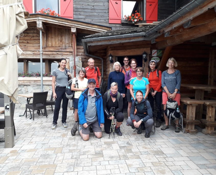 Auch am dritten Tag war uns Petrus hold, bei angenehmen Temperaturen und Sonnenschein stand der Sentier des Roches an. Dieser Steig führt vom Col de la Schlucht entlang der Felsabbrüche der Hochvogesen auf dem GR 531 nach La Gaschney. Teils recht ausgesetzte Passagen sind hier seilversichert, alle Teilnehmer meisterten diese Herausforderung mit Bravour. Belohnt wurden wir in der urigen Ferme de Frankenthal, die Lage inmitten eines Felskessels mit der prominenten Martinswand ist einzigartig schön. Bei sanftem Gebimmel von Kuhglocken konnte man sich im Allgäu wähnen- hätte die Bedienung nicht französisch gesprochen. Von Le Gaschney forderte dann ein Anstieg von nahezu 500 m nochmals Durchhaltevermögen. Dafür bot sich vom Hohneck- 1362 m- ein beeindruckendes 360° Grad- Panorama.