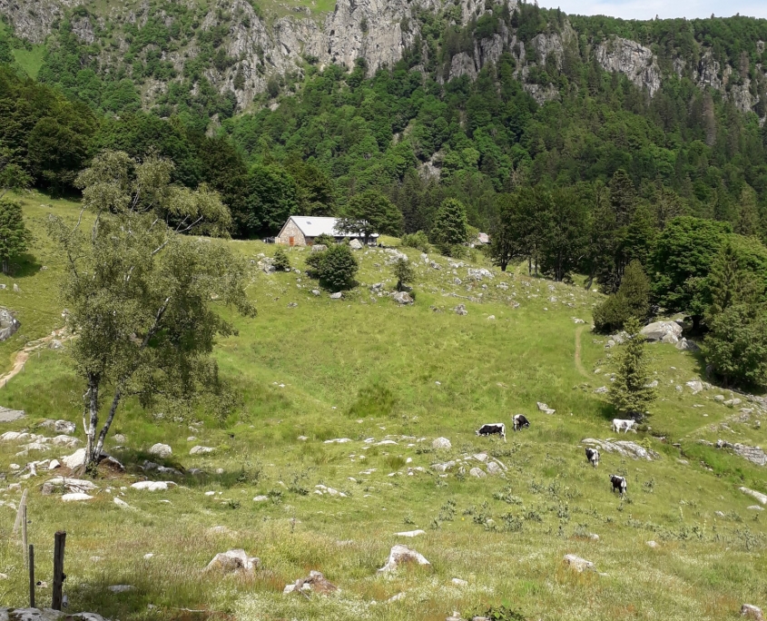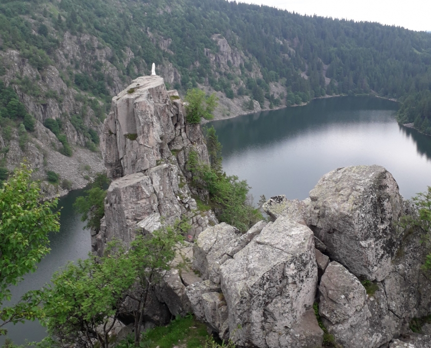 Am Samstag starteten wir von Mittlach im hinteren Münstertal zum zauberhaft schön gelegenen Lac de Fischbödle auf dem GR5. Dort erwartete uns ein Anstieg über 650 m Höhe zur Ferme-Auberge Kastelberg, wo wir uns zur Mittagszeit mit deftiger Kost auf der Aussichtsterasse stärken konnten. Über den Rainkopf ging es durch Märchenwald im Stil von Herr der Ringe hinab zum Lac d´Altenweiher und an der Fecht entlang zurück nach Mittlach.