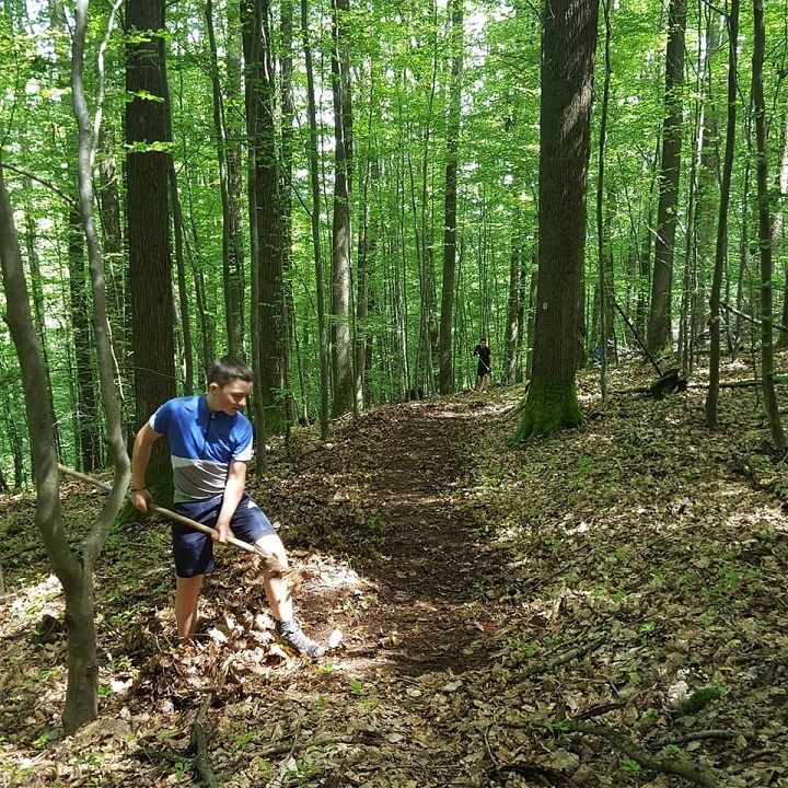 Die JDAV und der DAV sind Wegepaten für eine 18 km Strecke des Keschdewegs. Diese beginnt am Luger Geierstein und endet an der Zollstockhütte. Nicht nur der Spaß und der reine Waldkonsum sollte im Vordergrund stehen, auch die Sensibilisierung eines naturverträglichen Miteinanders in der Natur soll zukünftig deutlich mehr im Fokus sein! Zu den Aufgaben der Patenschaft gehört die Sicherstellung einer guten Wegfindung. Die Beschilderung muss überprüft und gegebenenfalls ergänzt werden. Gefahrenquellen wie größe Äste und Bäumstämme müssen aus dem Weg geräumt werden und auch der Pfad muss ggf. instand gehalten werden. Dies bedeutet nicht nur das Abfahren der Tour, sondern auch mit Hacke und Spaten die Hände schmutzig machen. Das kann sehr schweißtreibend sein. Während dessen wird natürlich auch der Müll eingesammelt – man glaubt es ja kaum – wie viel Müll tatsächlich auf den Wanderwegen und Trails liegen gelassen wird. Nach getaner Arbeit – nimmt man den Wald und unsere Wege mit anderen Augen wahr.