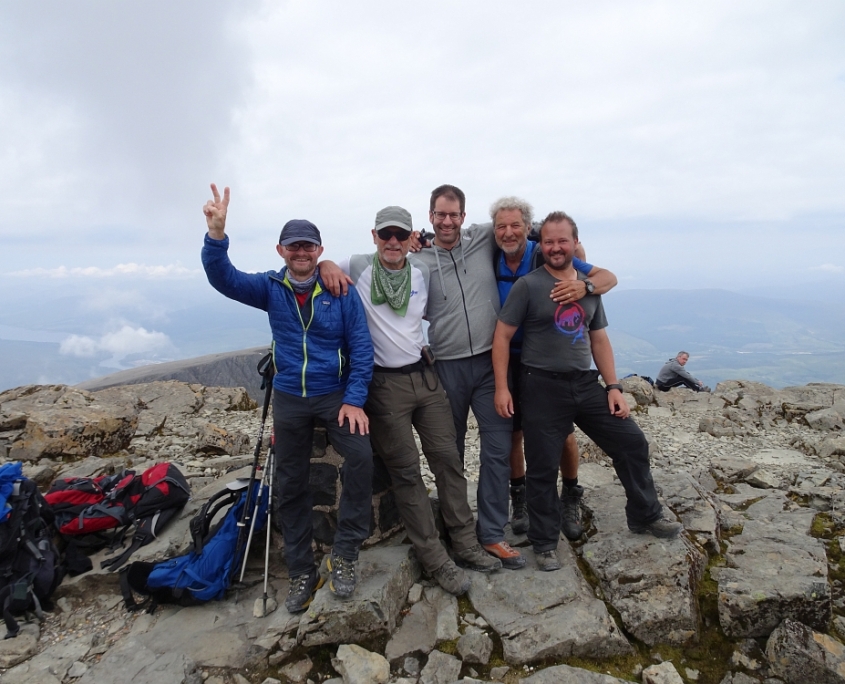 Ein Teil der Gruppe will es sich natürlich nicht nehmen lassen, am nächsten Tag, den höchsten Berg Großbritanniens, den Ben Nevis (1344 m), zu besteigen. Das Wetter verspricht gut zu werden und eine Besteigung möglich zu machen. Der Aufstieg bereitet bei dem guten Wetter keine größeren technischen Schwierigkeiten, ist konditionell jedoch fordernd, da doch über 1300 hm zu bewältigen sind. Schade, dass an diesem Tag wohl noch mehrere Wanderer die Idee hatten den Ben Nevis zu besteigen, so zog eine regelrechte Karawane auf dem größtenteils mit Steinplatten ausgelegten Weg, zum Gipfel. Beim Erreichen des Gipfels kommen leider Wolken auf, so dass die Aussicht nur kurze Zeit genossen werden kann. Am Nachmittag besichtigen wir noch die Whisky-Destillerie Ben Nevis und lassen uns in die Geheimnisse des Whisky-Brennens einweihen. Die Tour klingt mit einem Zug durch das Nachtleben von Fort William, einem lebendigen Städtchen, aus. Morgen geht’s leider wieder nach Hause.